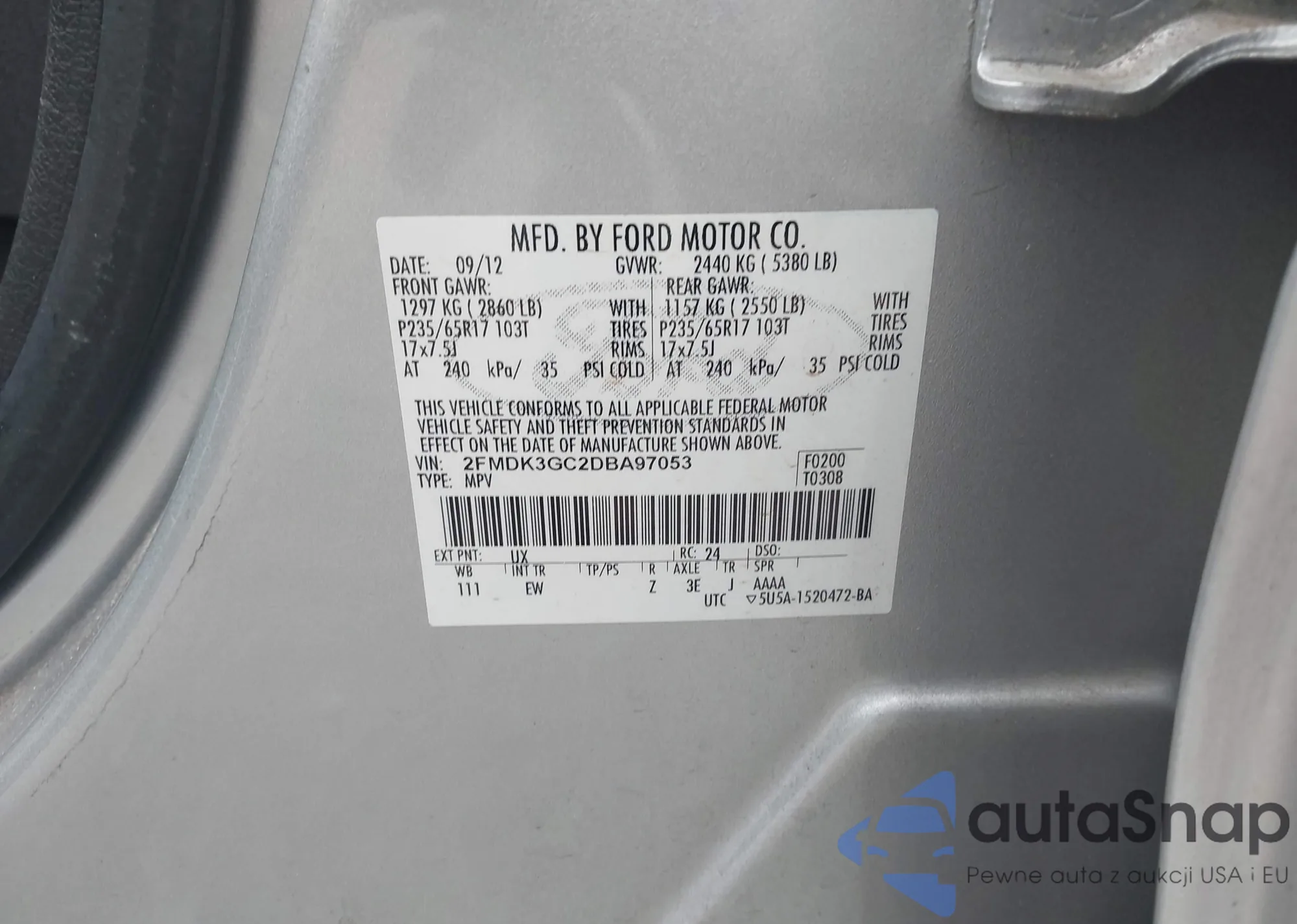 VIN: 2FMDK3GC2DBA97053
