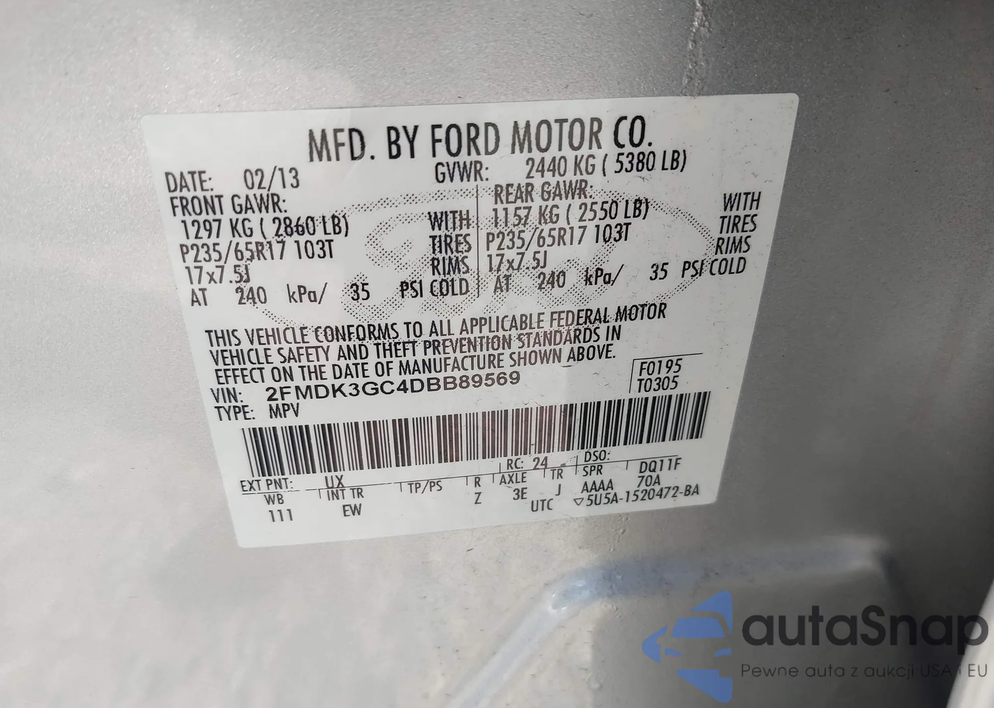 VIN: 2FMDK3GC4DBB89569