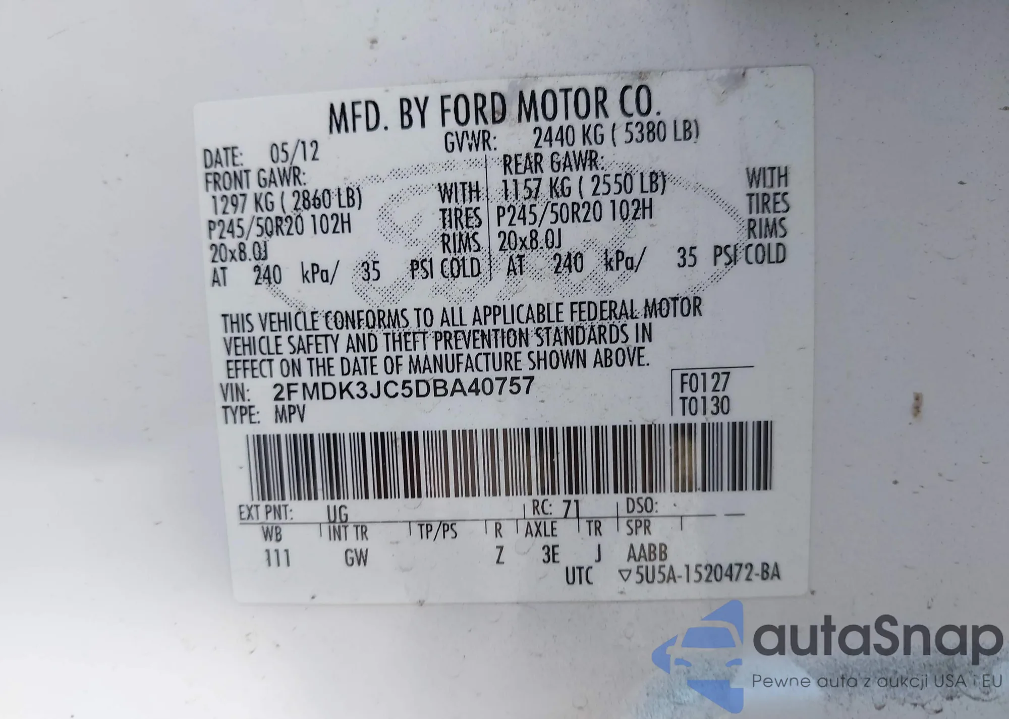 VIN: 2FMDK3JC5DBA40757