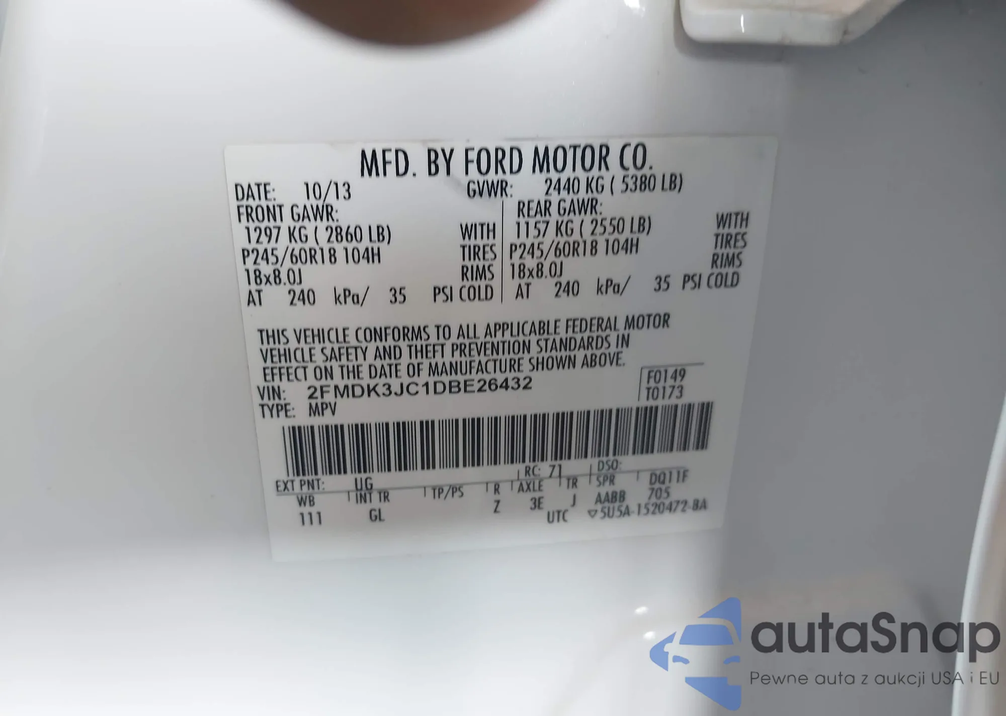 VIN: 2FMDK3JC1DBE26432
