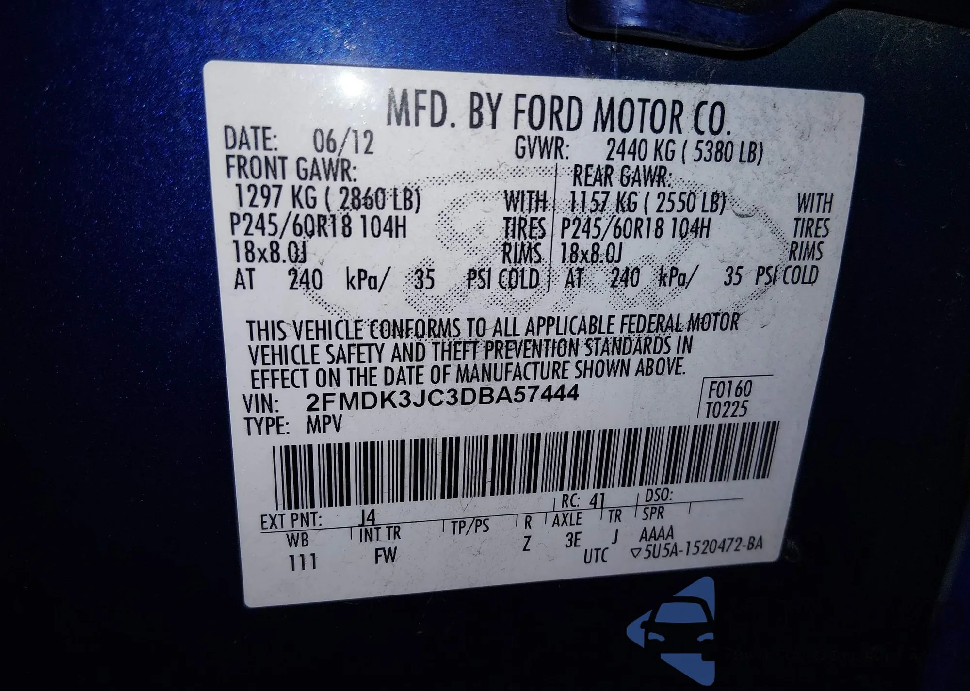VIN: 2FMDK3JC3DBA57444