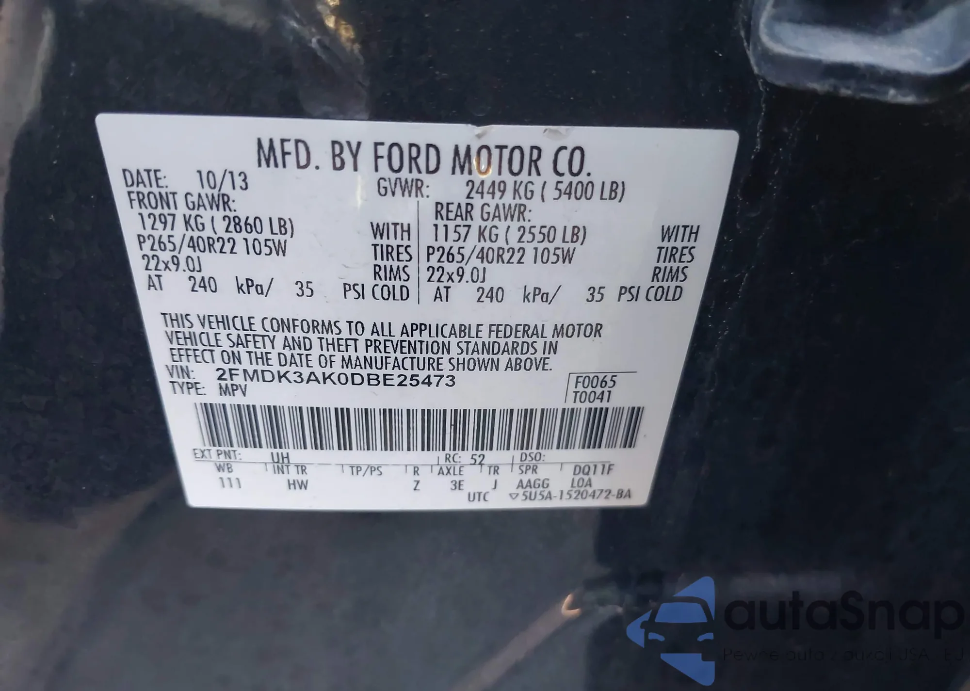 The car Ford Edge 2013 (VIN 2FMDK3AK0DBE25473) has not been auctioned before. The documents are clean, and the mileage matches or is below the market average. Sold by an insurance company – we recommend purchase. Delivery to the port will take approx. 6–8 weeks.