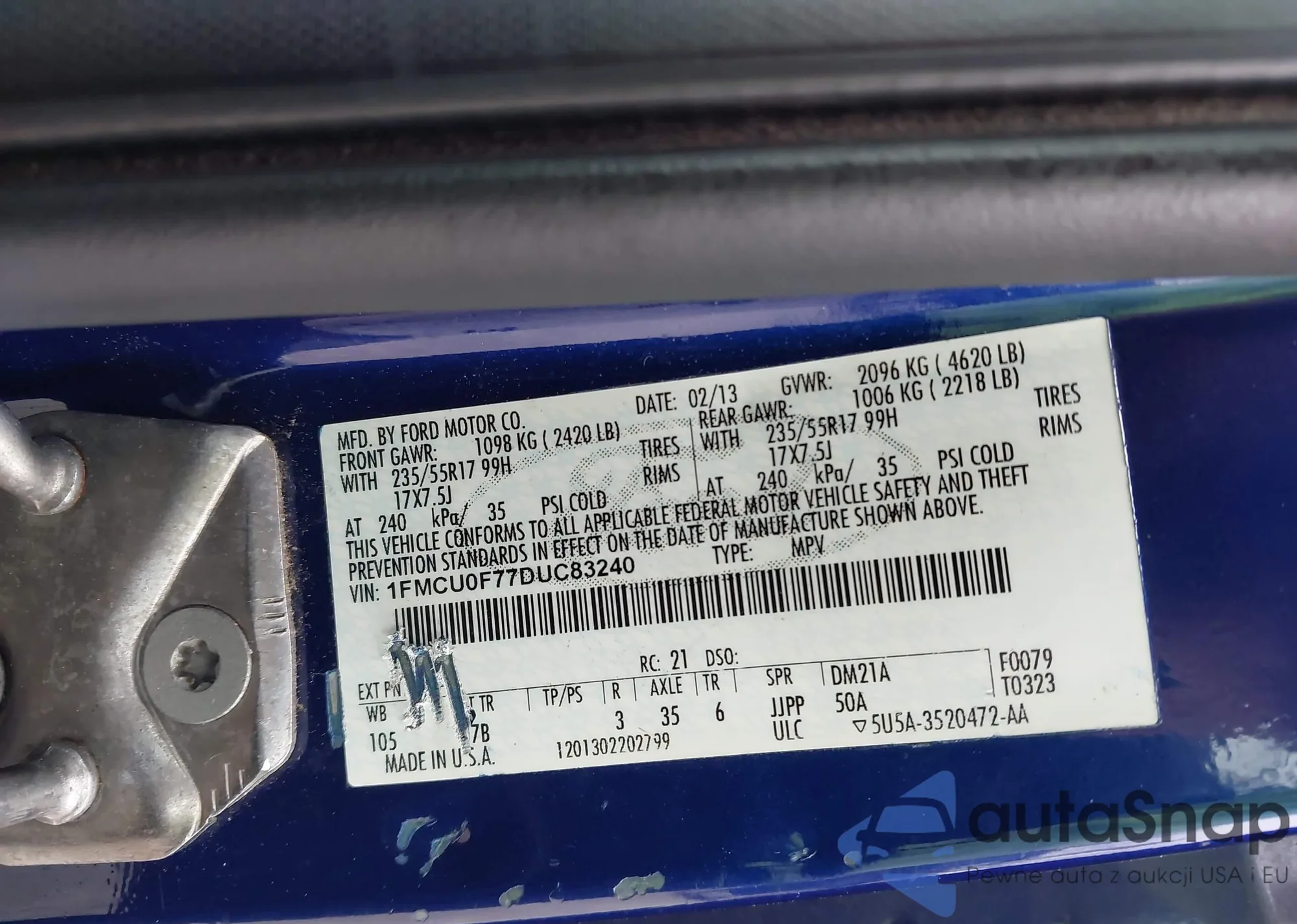 VIN: 1FMCU0F77DUC83240