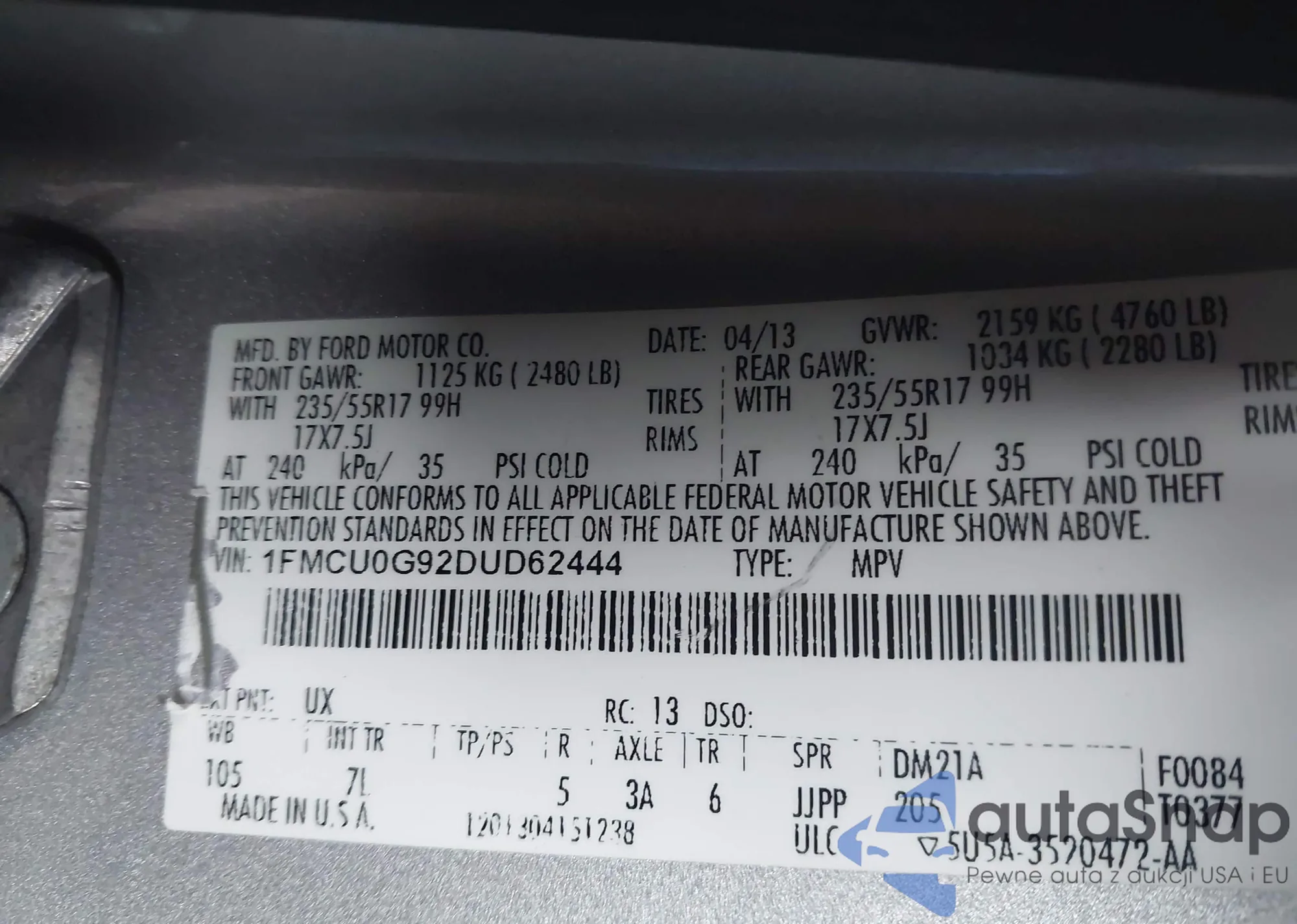 VIN: 1FMCU0G92DUD62444