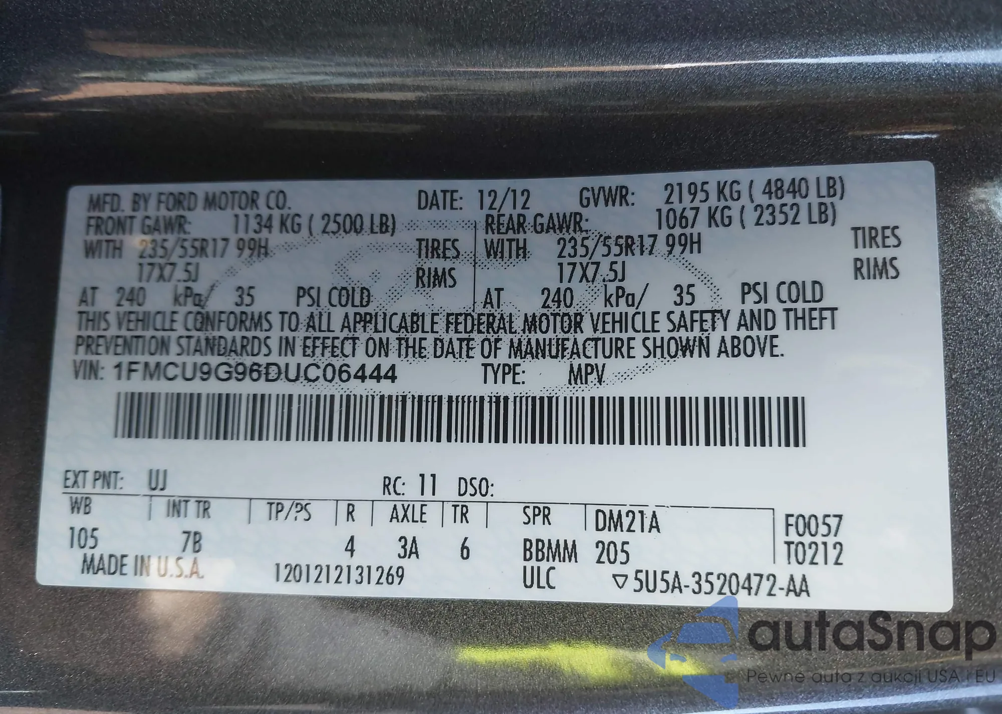 VIN: 1FMCU9G96DUC06444