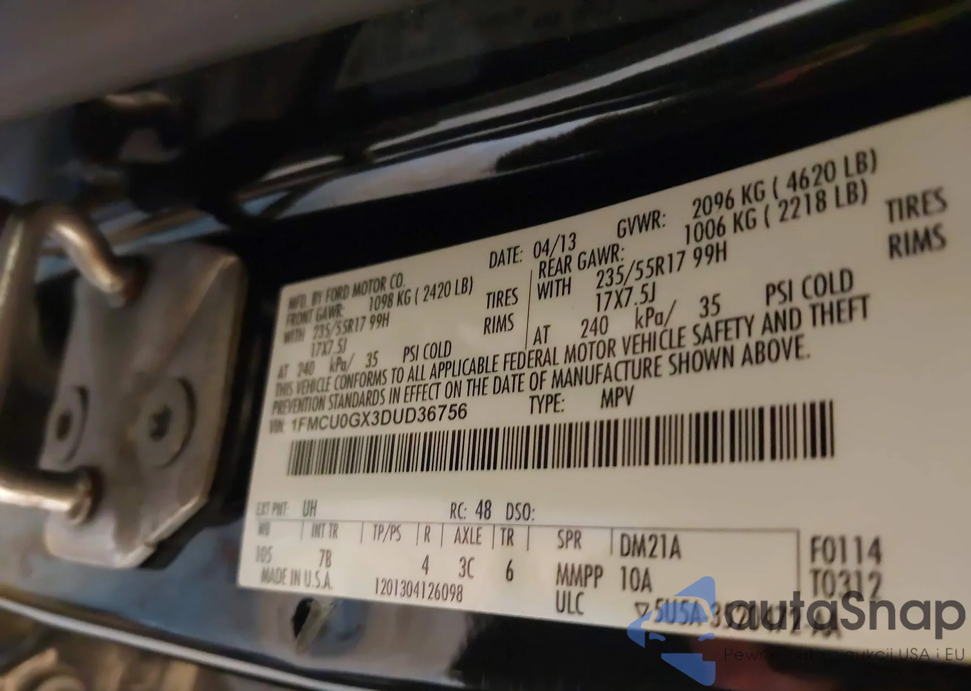 VIN: 1FMCU0GX3DUD36756