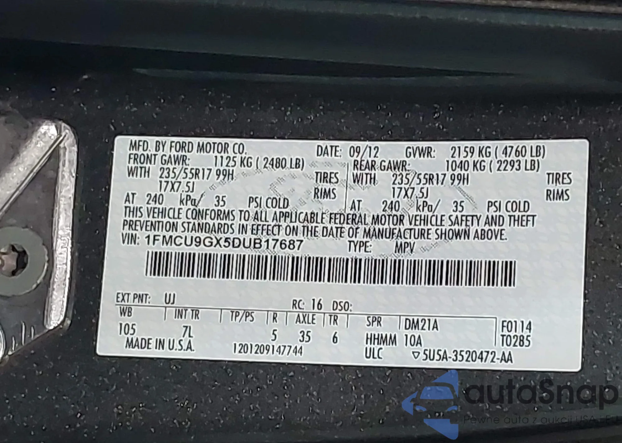 VIN: 1FMCU9GX5DUB17687