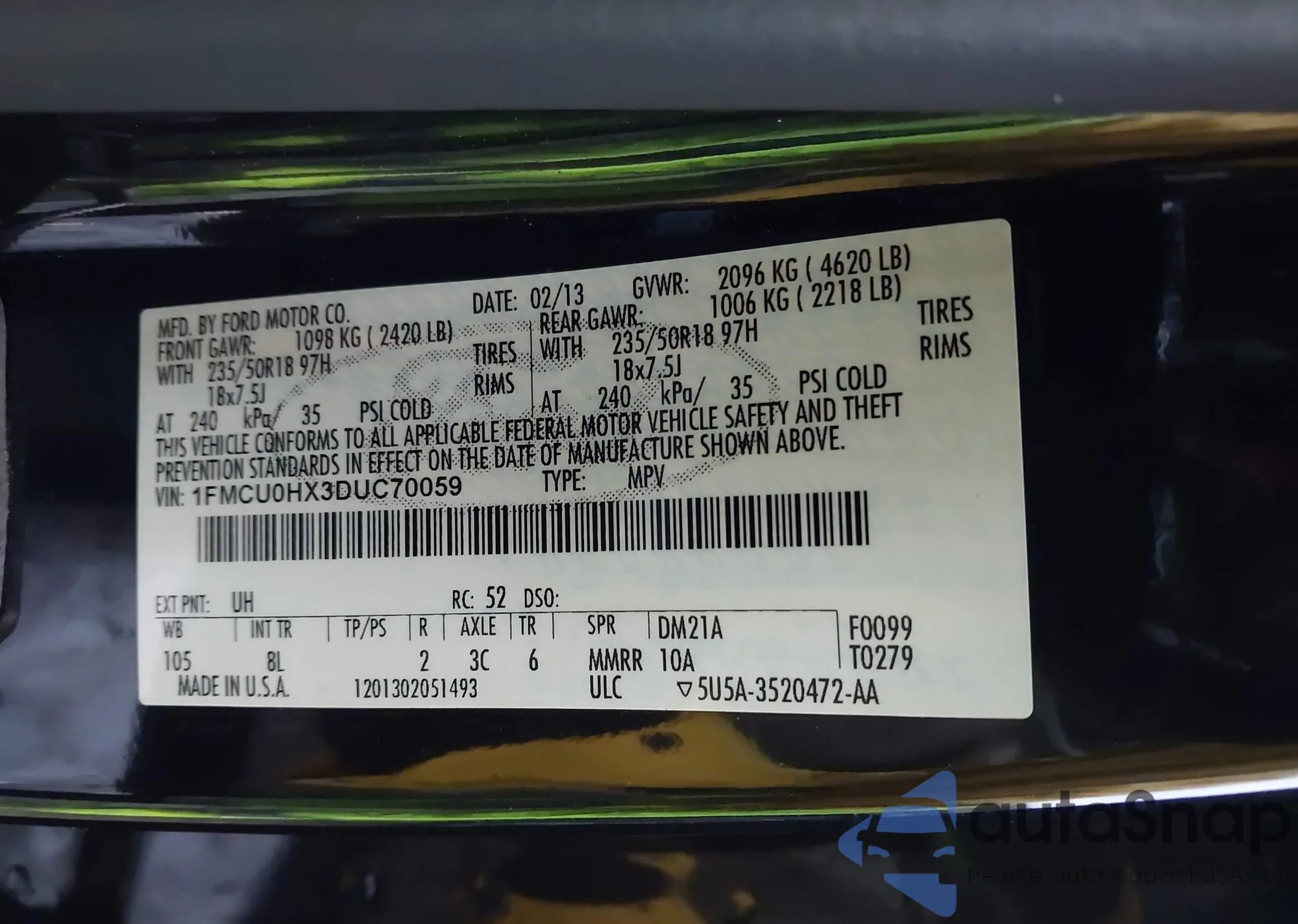 VIN: 1FMCU0HX3DUC70059