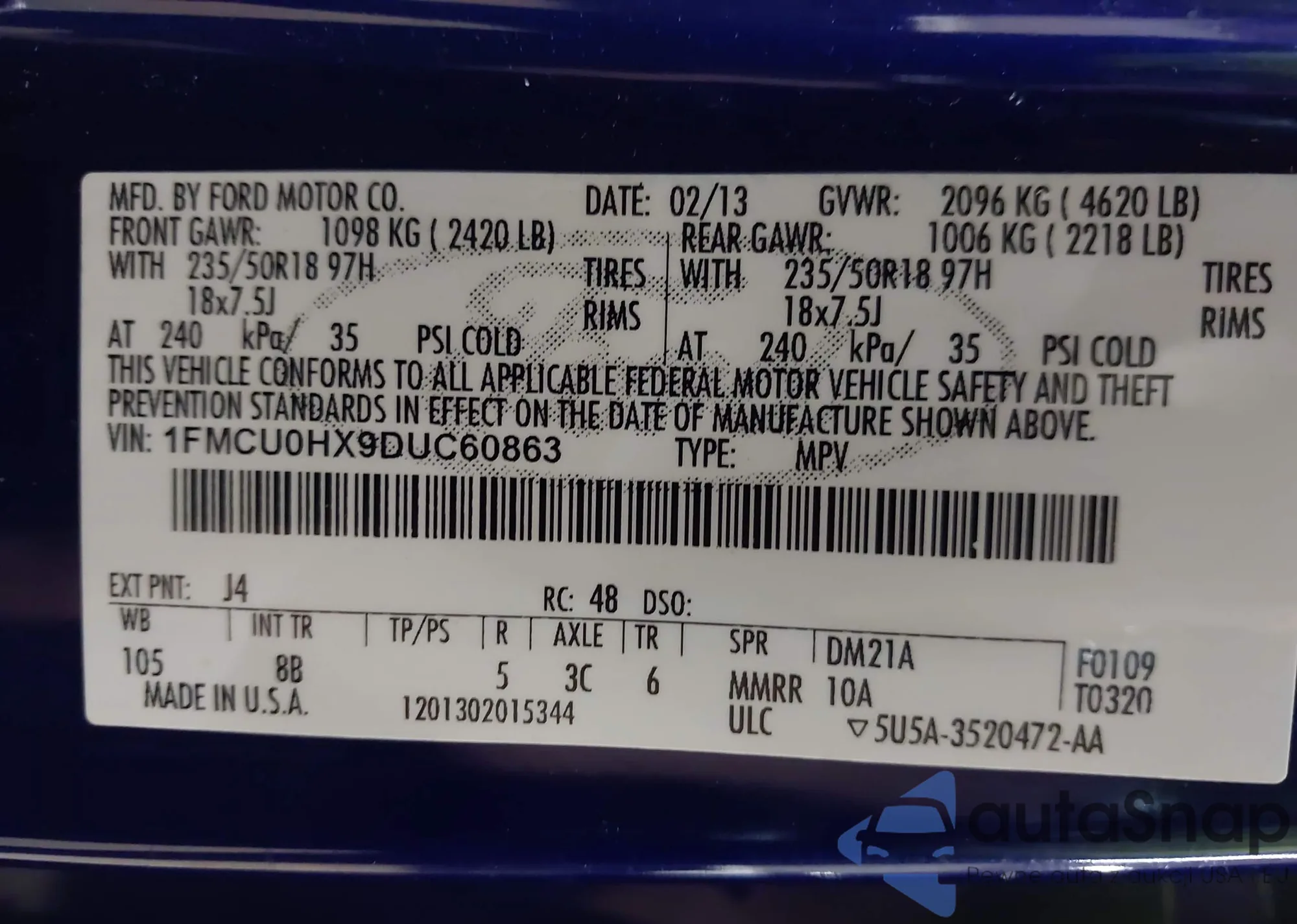 The car Ford Escape 2013 (VIN 1FMCU0HX9DUC60863) has not been auctioned before. The documents are clean, and the mileage matches or is below the market average. Sold by an insurance company – we recommend purchase. Delivery to the port will take approx. 6–8 weeks.