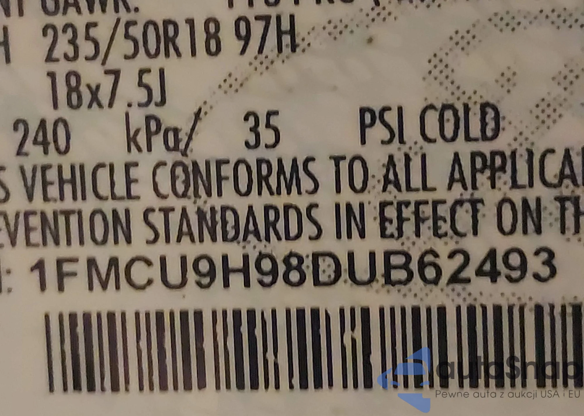 VIN: 1FMCU9H98DUB62493