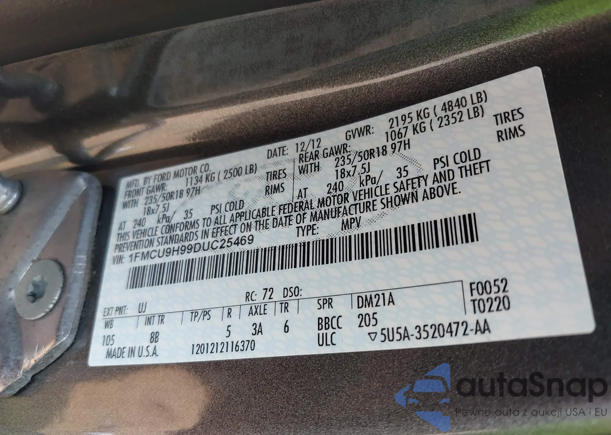 VIN: 1FMCU9H99DUC25469