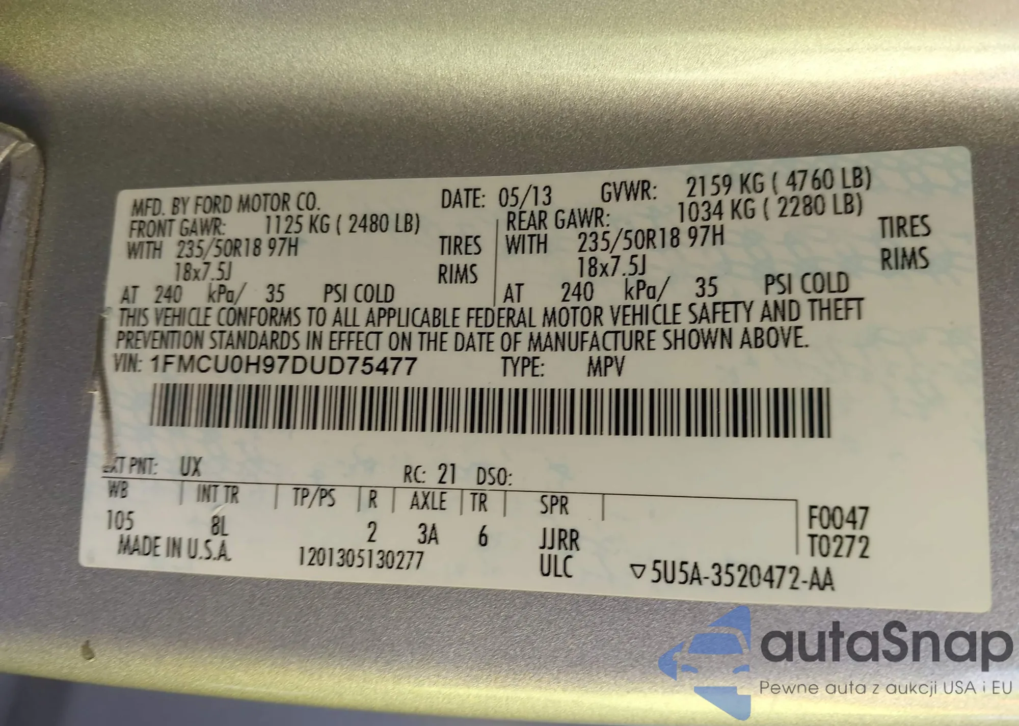 VIN: 1FMCU0H97DUD75477