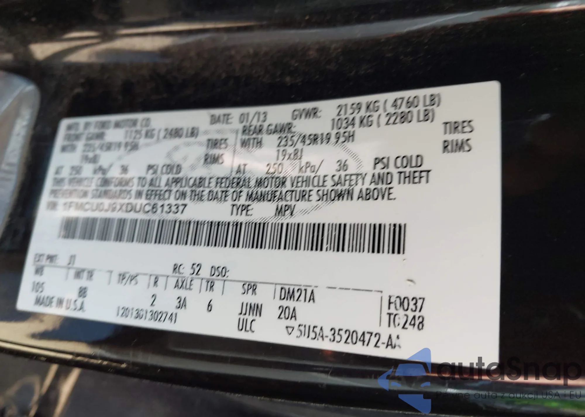 VIN: 1FMCU0J9XDUC61337
