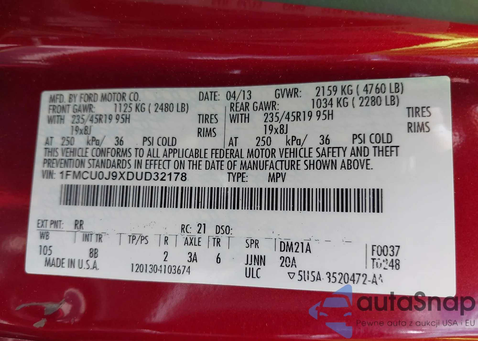 VIN: 1FMCU0J9XDUD32178