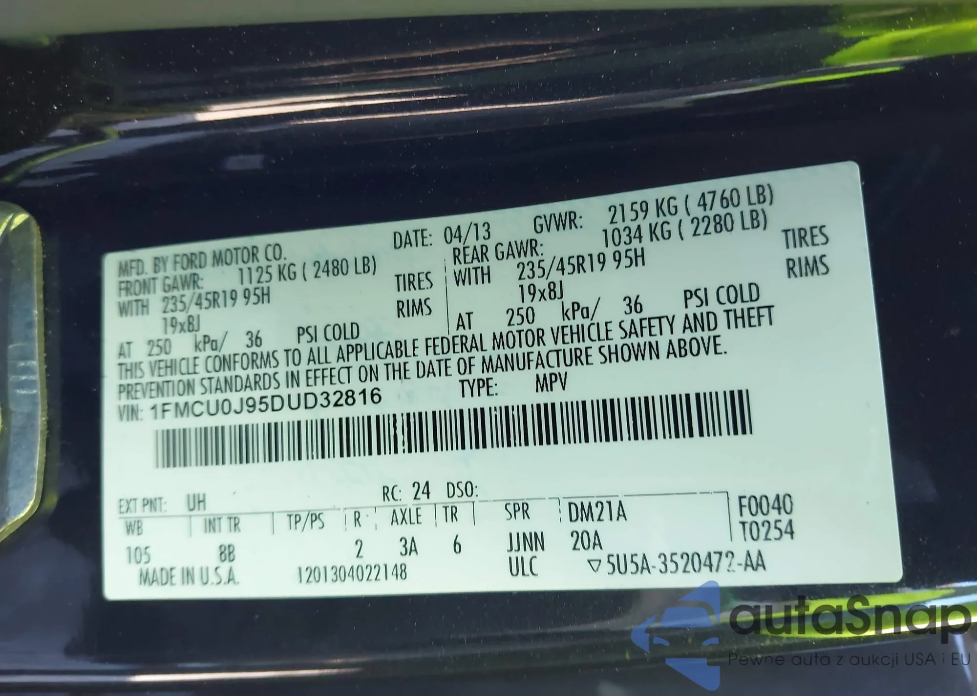VIN: 1FMCU0J95DUD32816