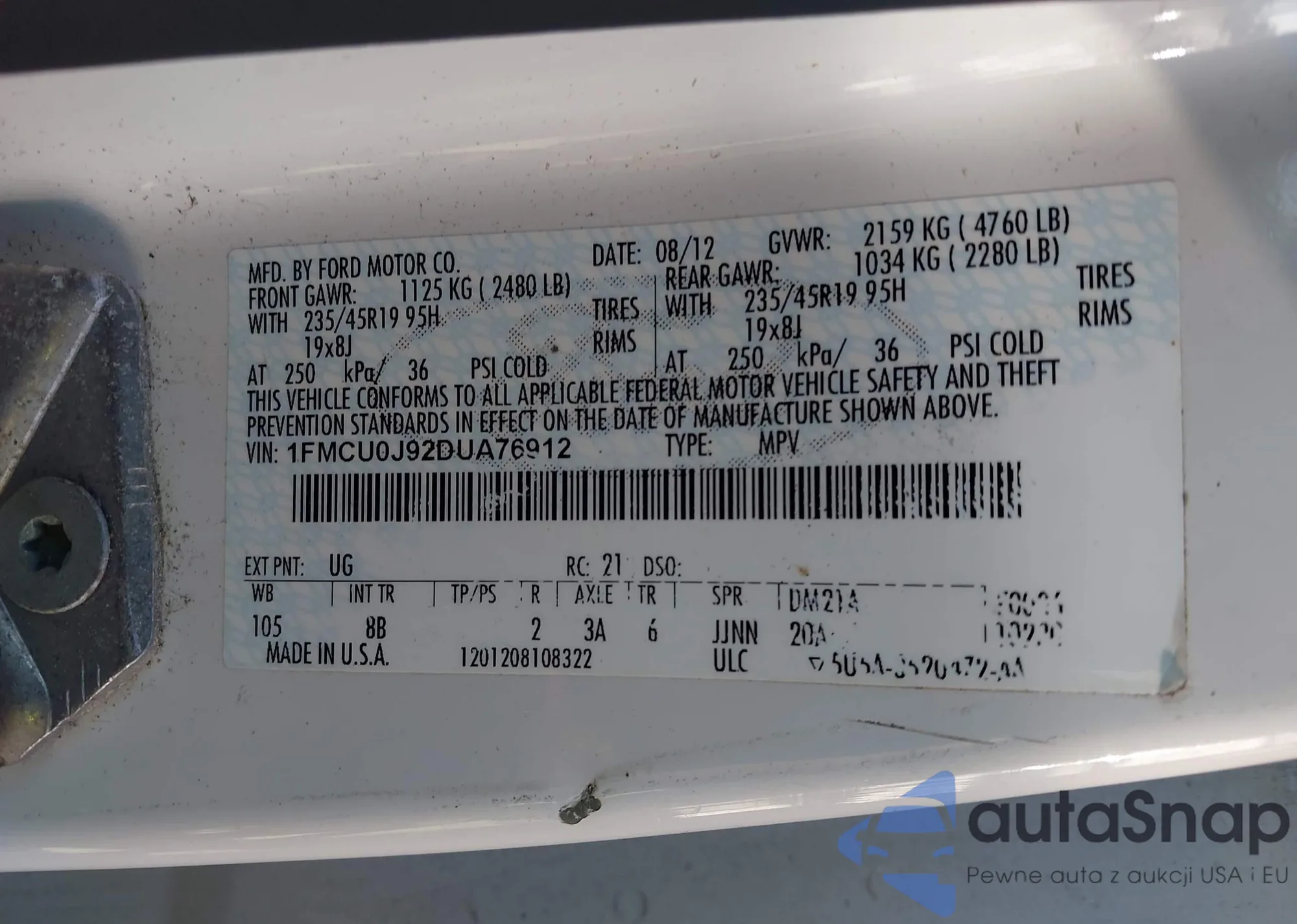 VIN: 1FMCU0J92DUA76912