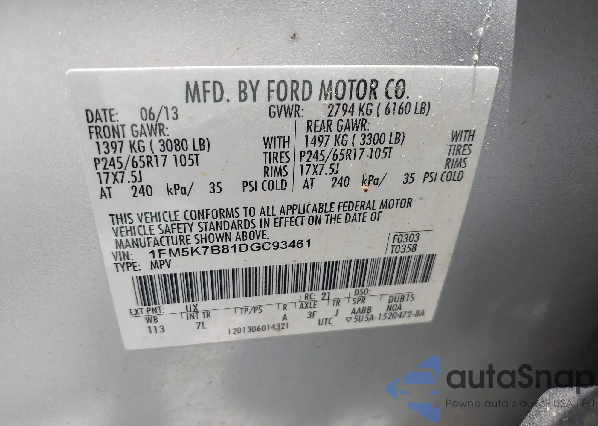 VIN: 1FM5K7B81DGC93461