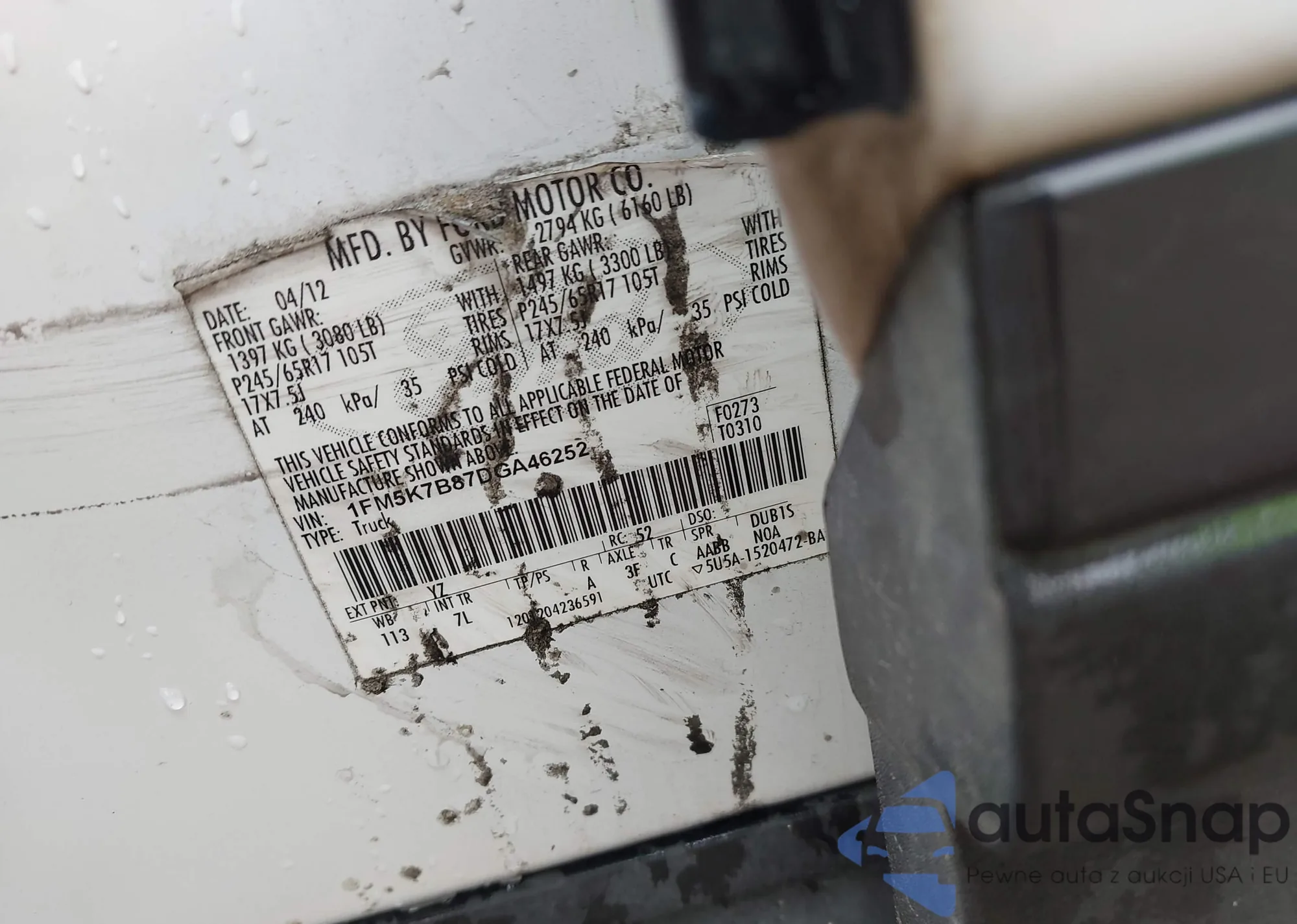 VIN: 1FM5K7B87DGA46252