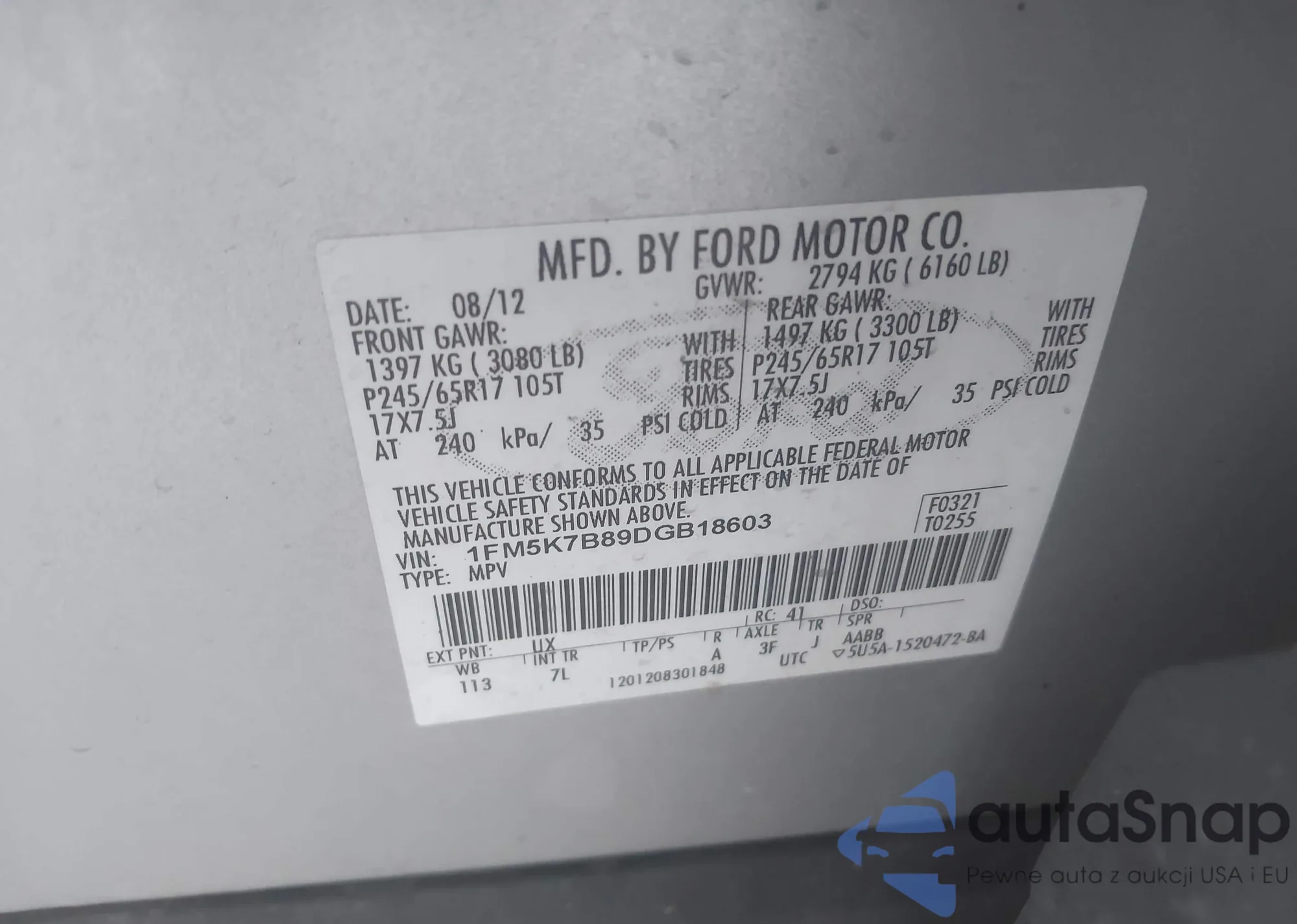 VIN: 1FM5K7B89DGB18603