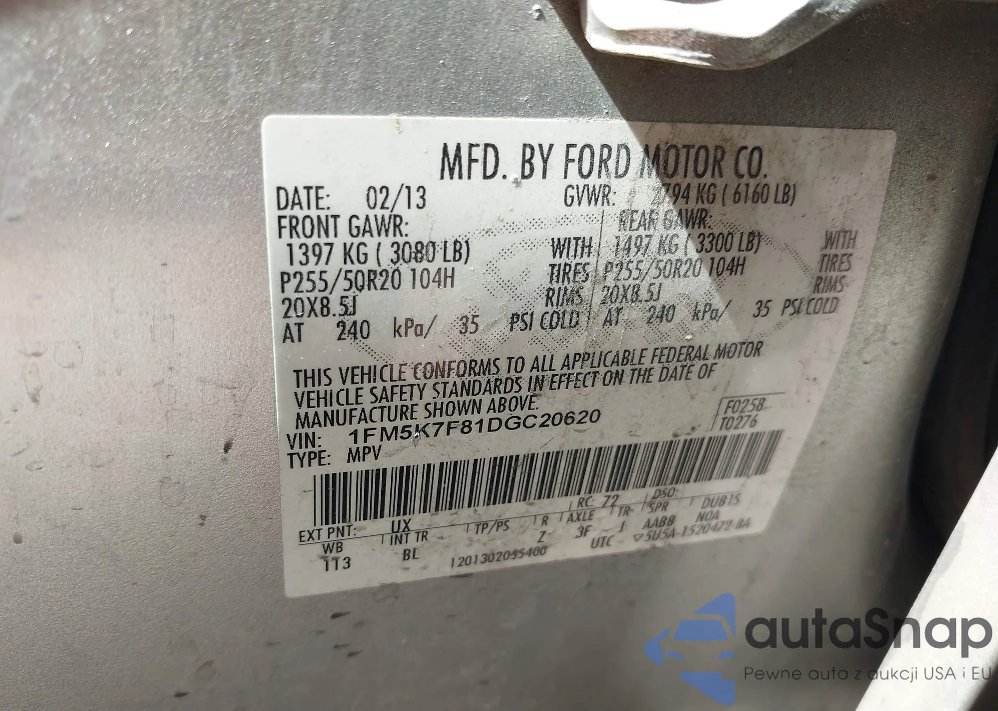 The car Ford Explorer 2013 (VIN 1FM5K7F81DGC20620) has already been auctioned 1 times and/or is sold by an unverified seller. We recommend checking the Carfax report and confirming registration possibilities before purchase.