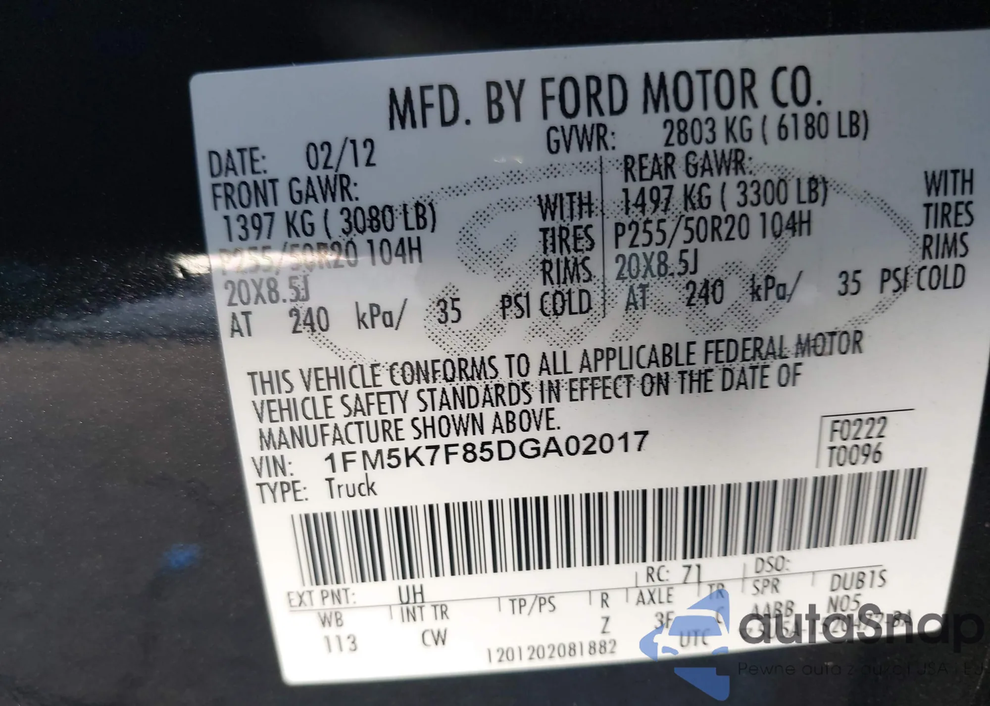 The car Ford Explorer 2013 (VIN 1FM5K7F85DGA02017) has not been auctioned before. The documents are clean, and the mileage matches or is below the market average. Sold by an insurance company – we recommend purchase. Delivery to the port will take approx. 6–8 weeks.