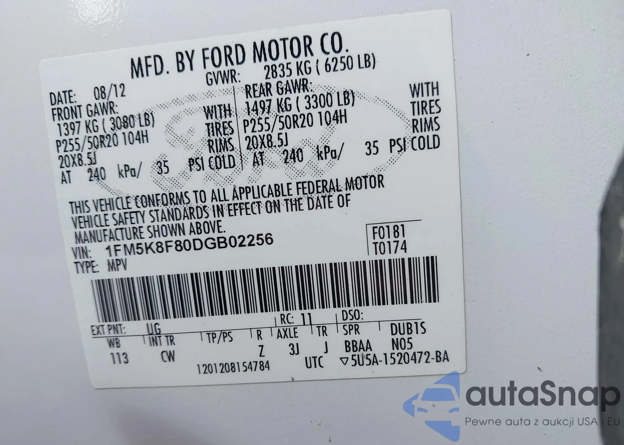 VIN: 1FM5K8F80DGB02256