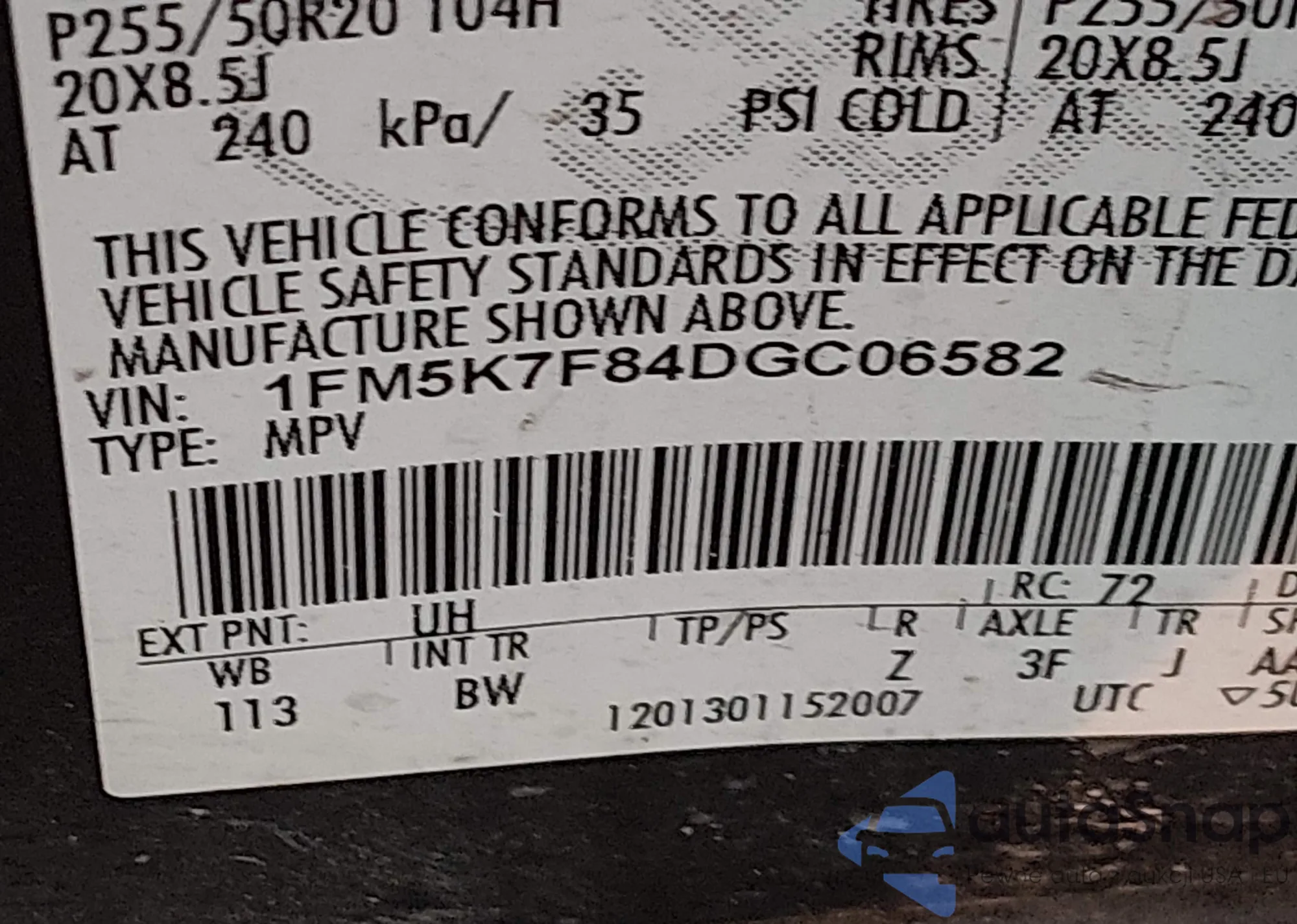 The car Ford Explorer 2013 (VIN 1FM5K7F84DGC06582) has not been auctioned before. The documents are clean, and the mileage matches or is below the market average. Sold by an insurance company – we recommend purchase. Delivery to the port will take approx. 6–8 weeks.