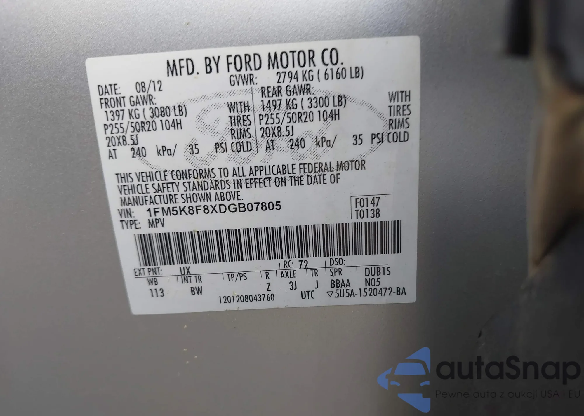 VIN: 1FM5K8F8XDGB07805