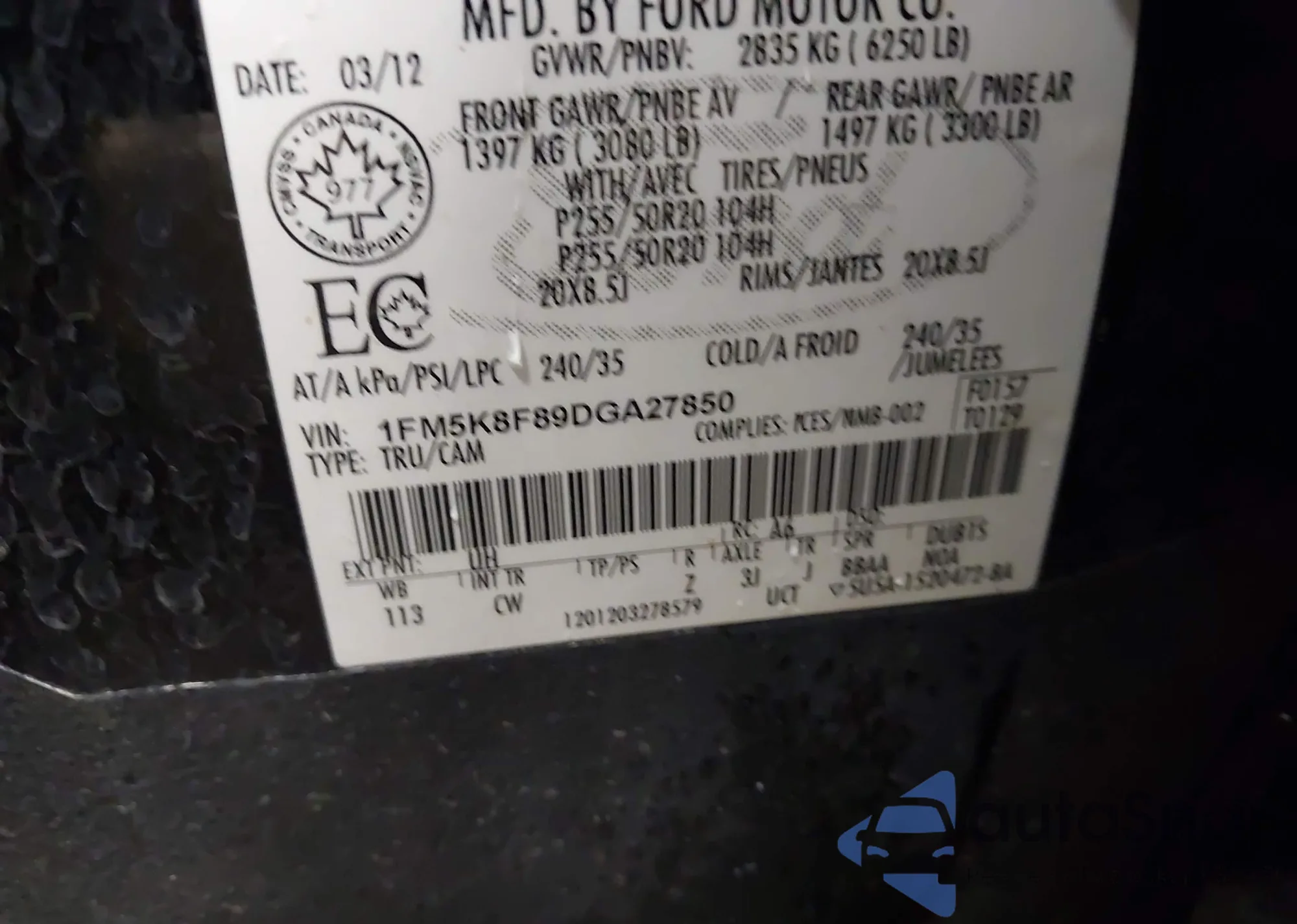 VIN: 1FM5K8F89DGA27850