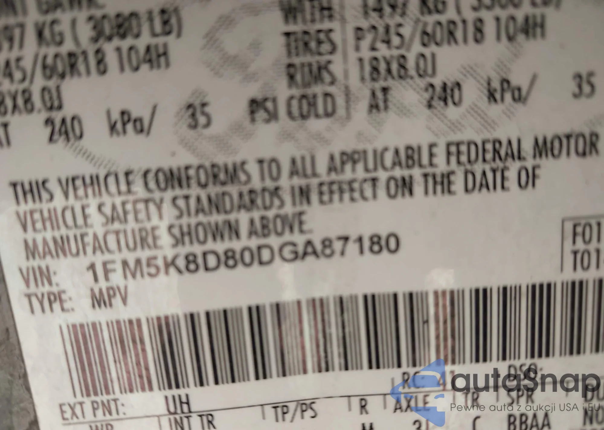 VIN: 1FM5K8D80DGA87180