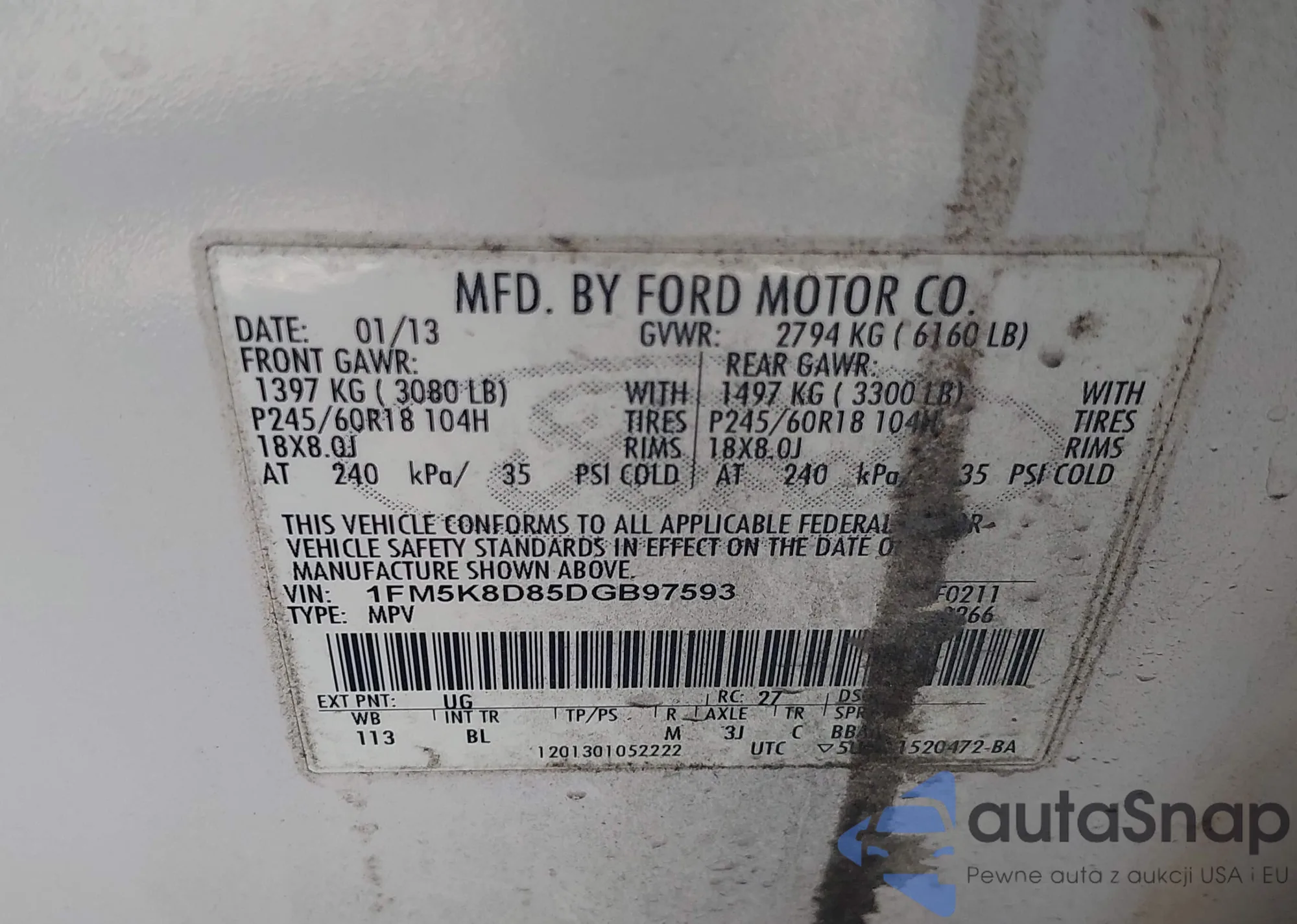 VIN: 1FM5K8D85DGB97593