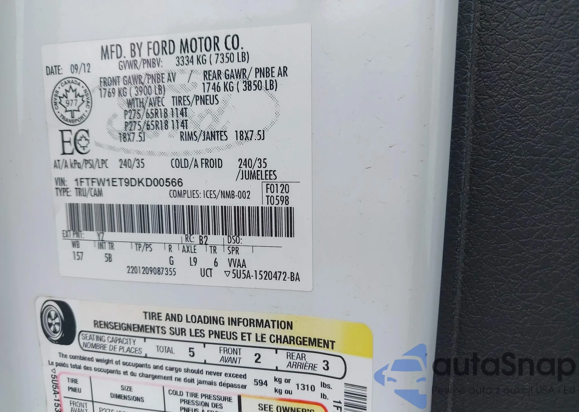 VIN: 1FTFW1ET9DKD00566
