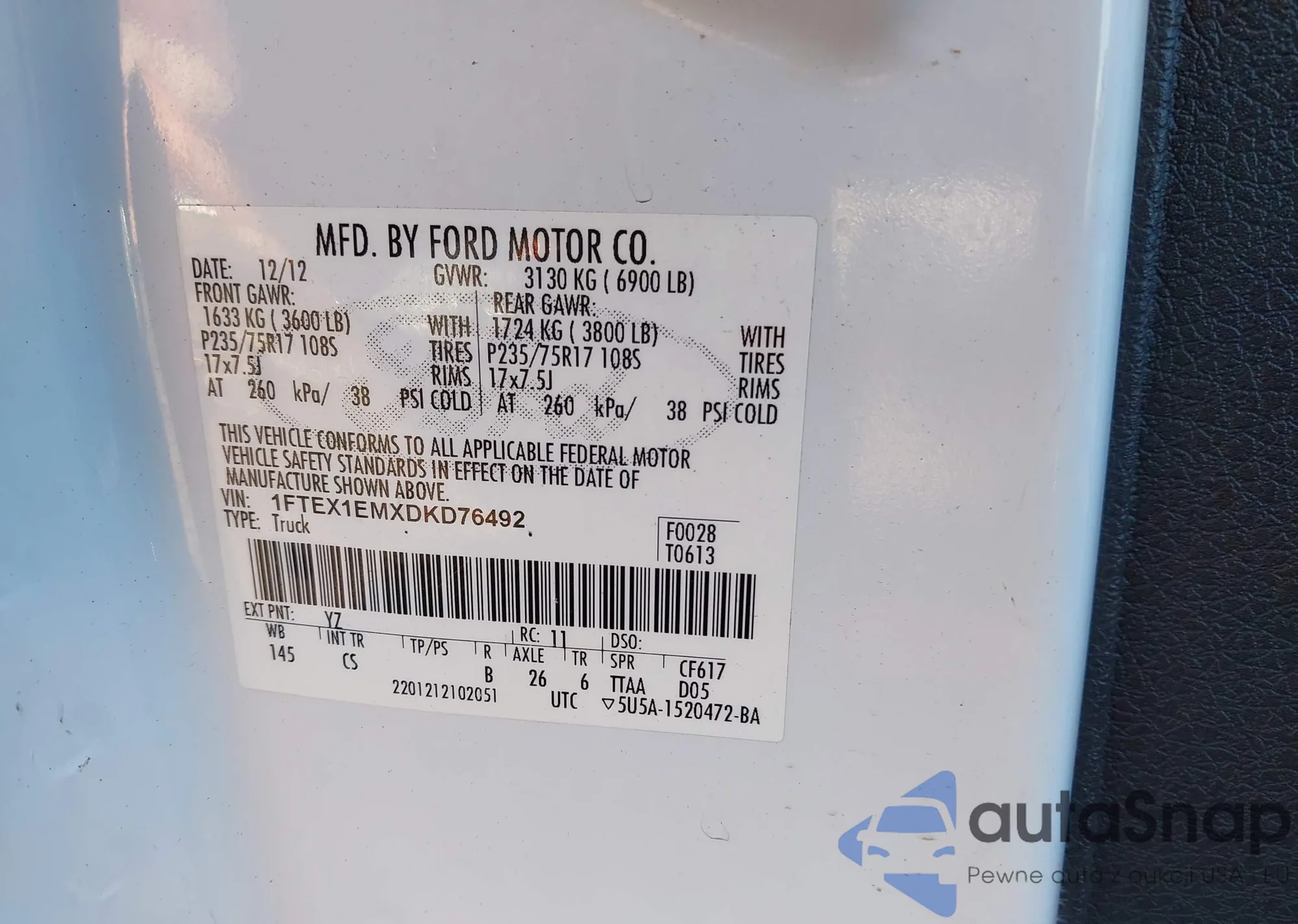 • VIN: 1FTEX1EMXDKD76492