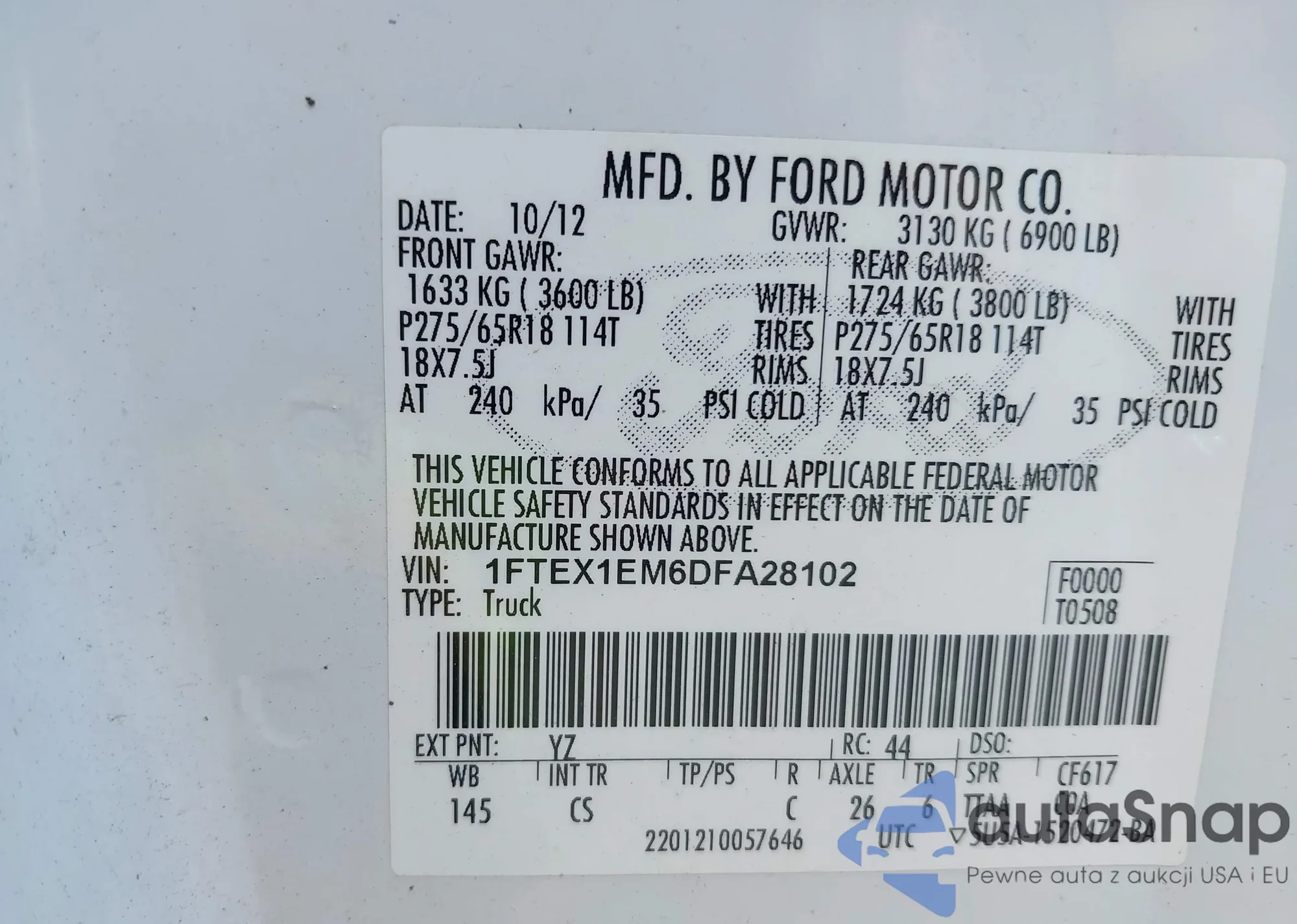 VIN: 1FTEX1EM6DFA28102