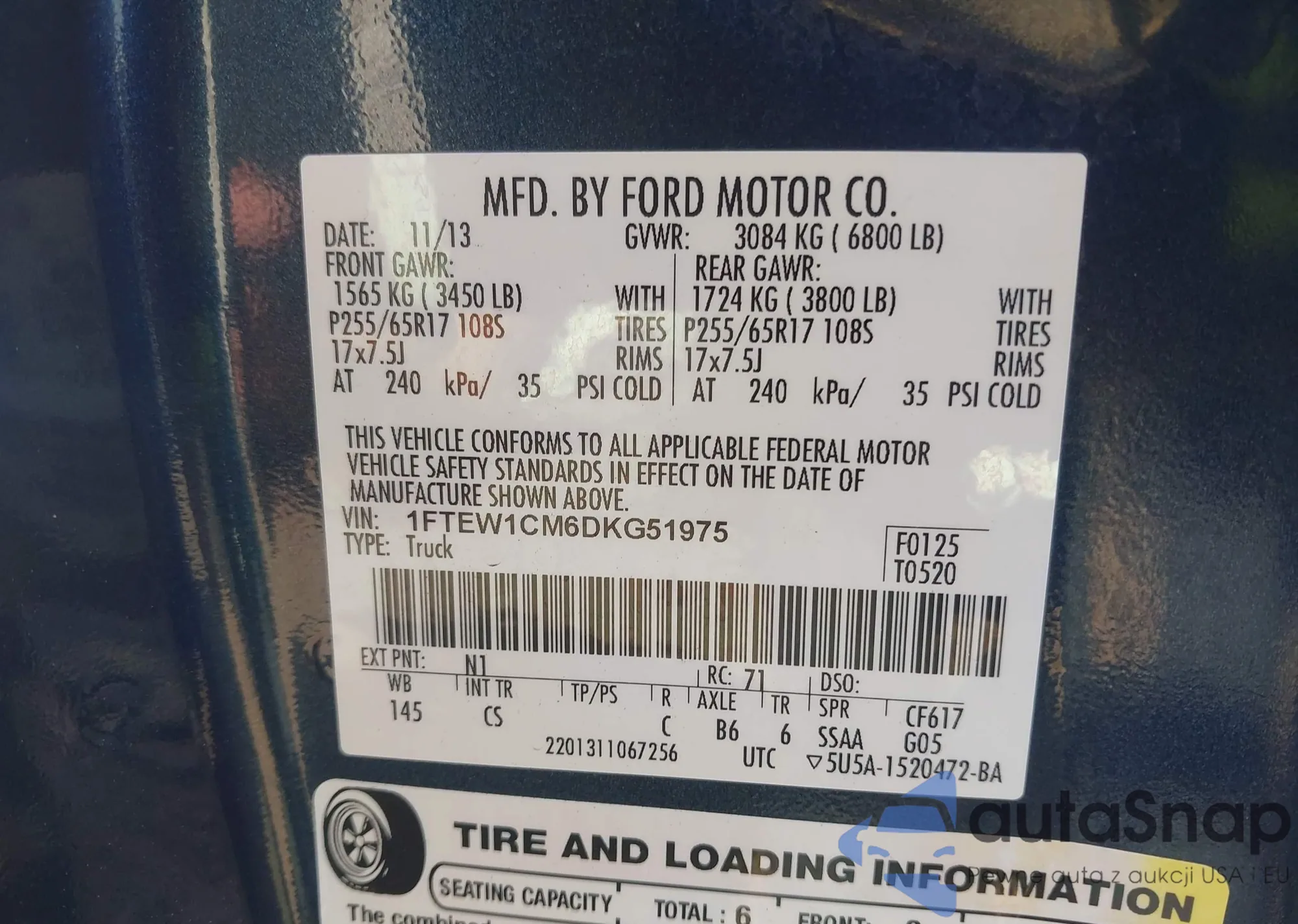 VIN: 1FTEW1CM6DKG51975