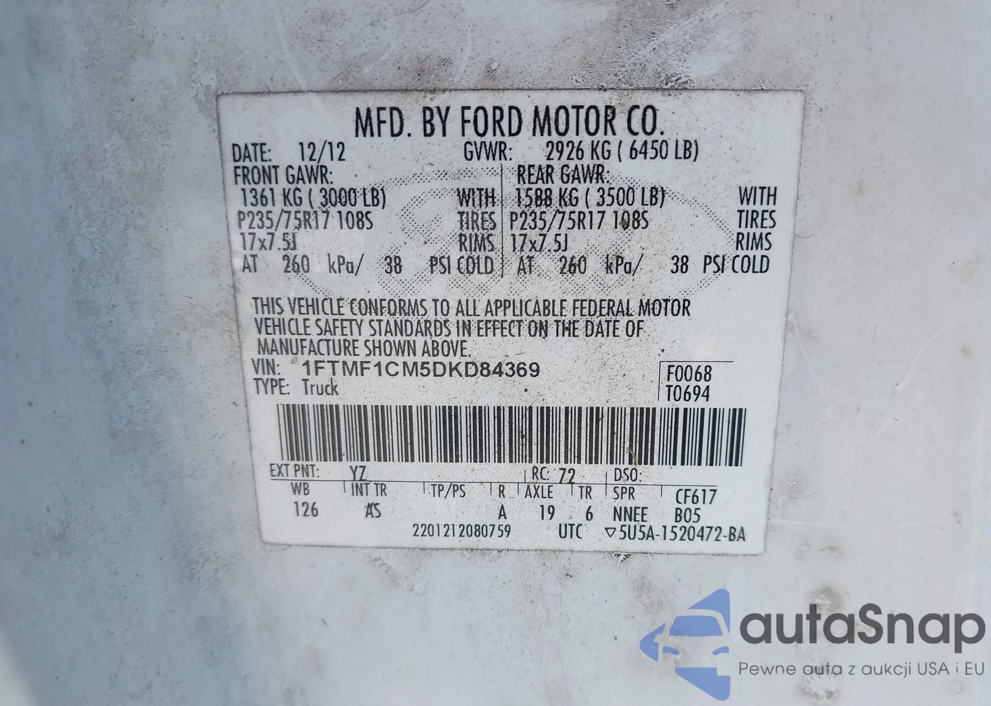 VIN: 1FTMF1CM5DKD84369