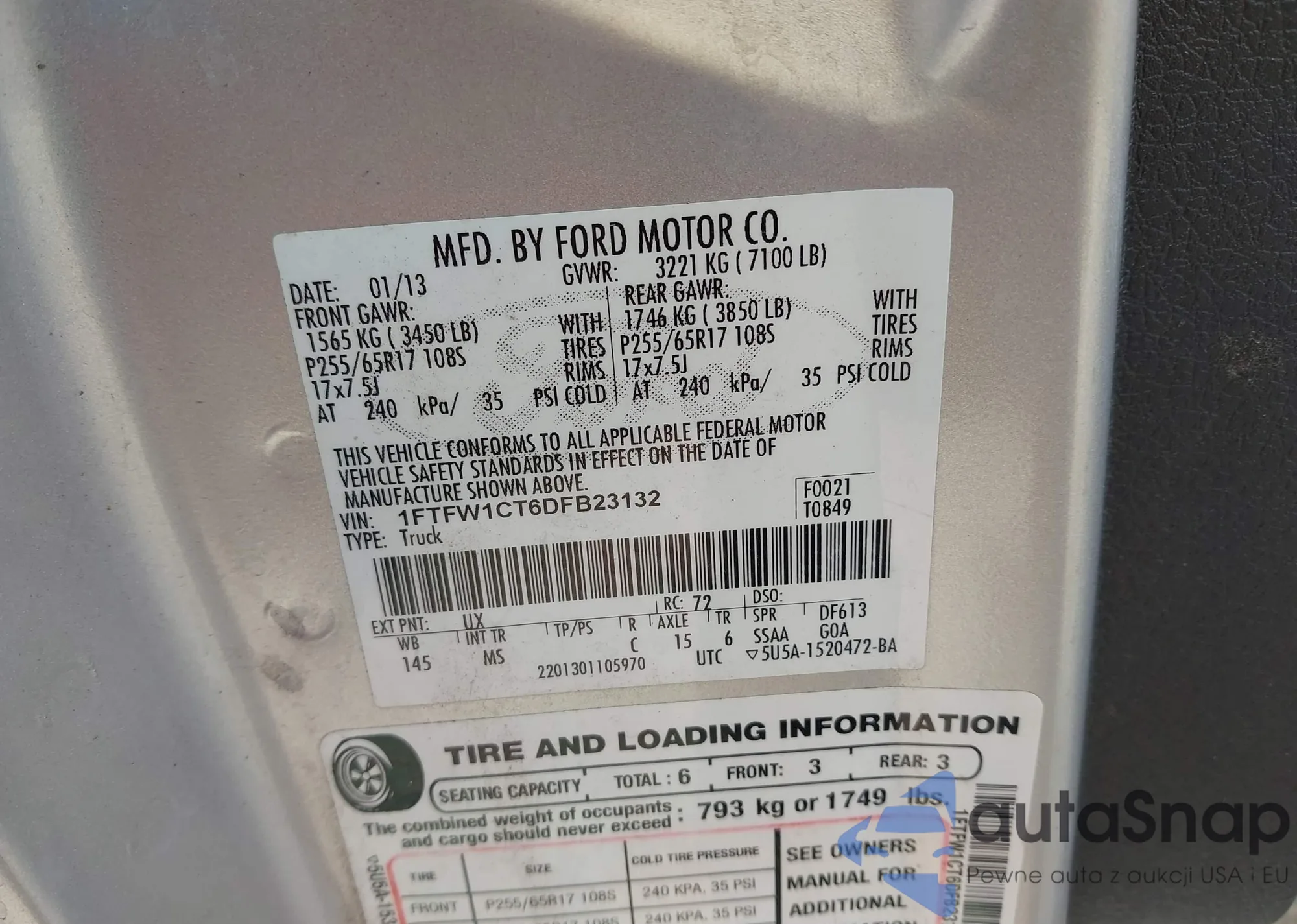 VIN: 1FTFW1CT6DFB23132