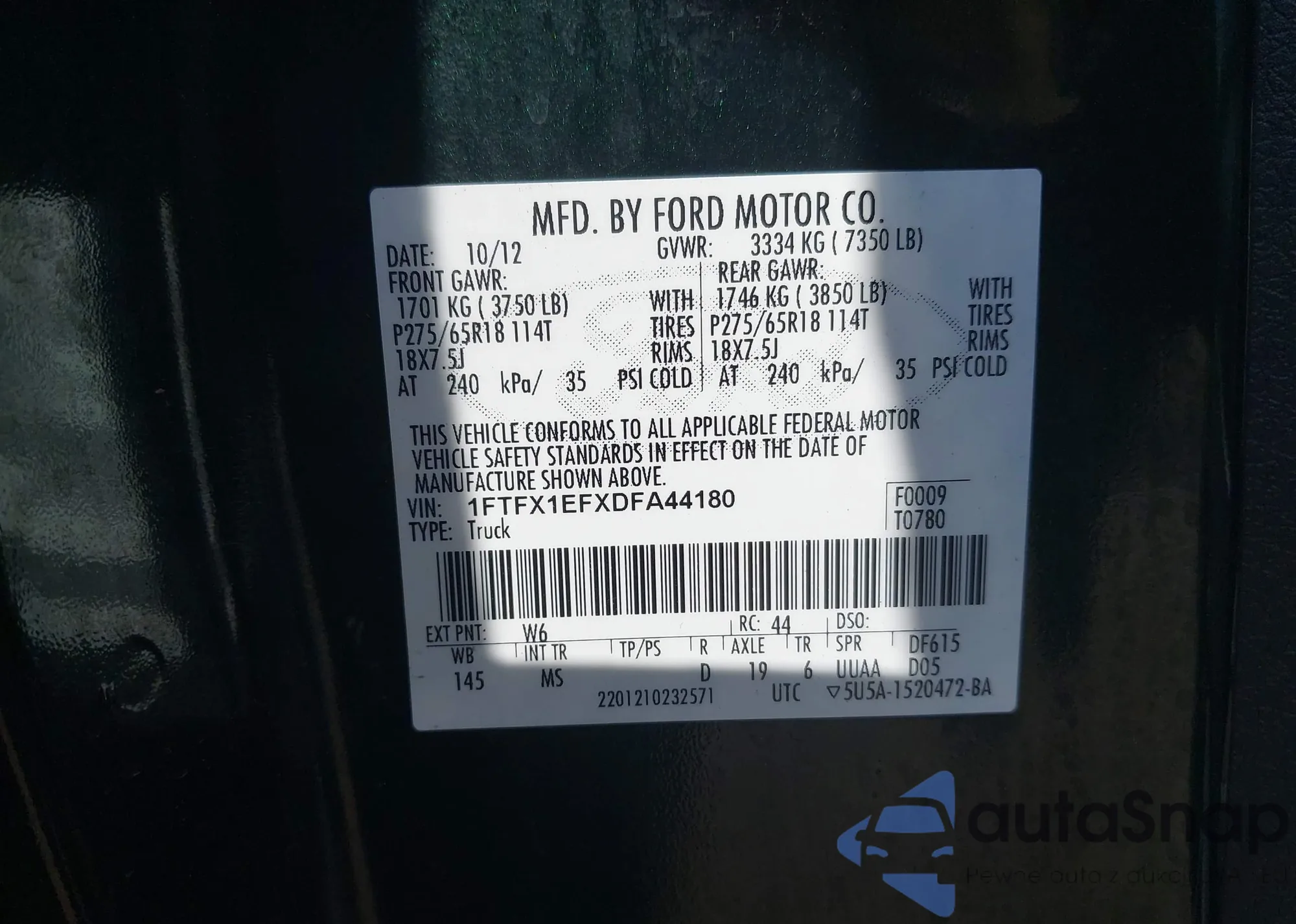VIN: 1FTFX1EFXDFA44180