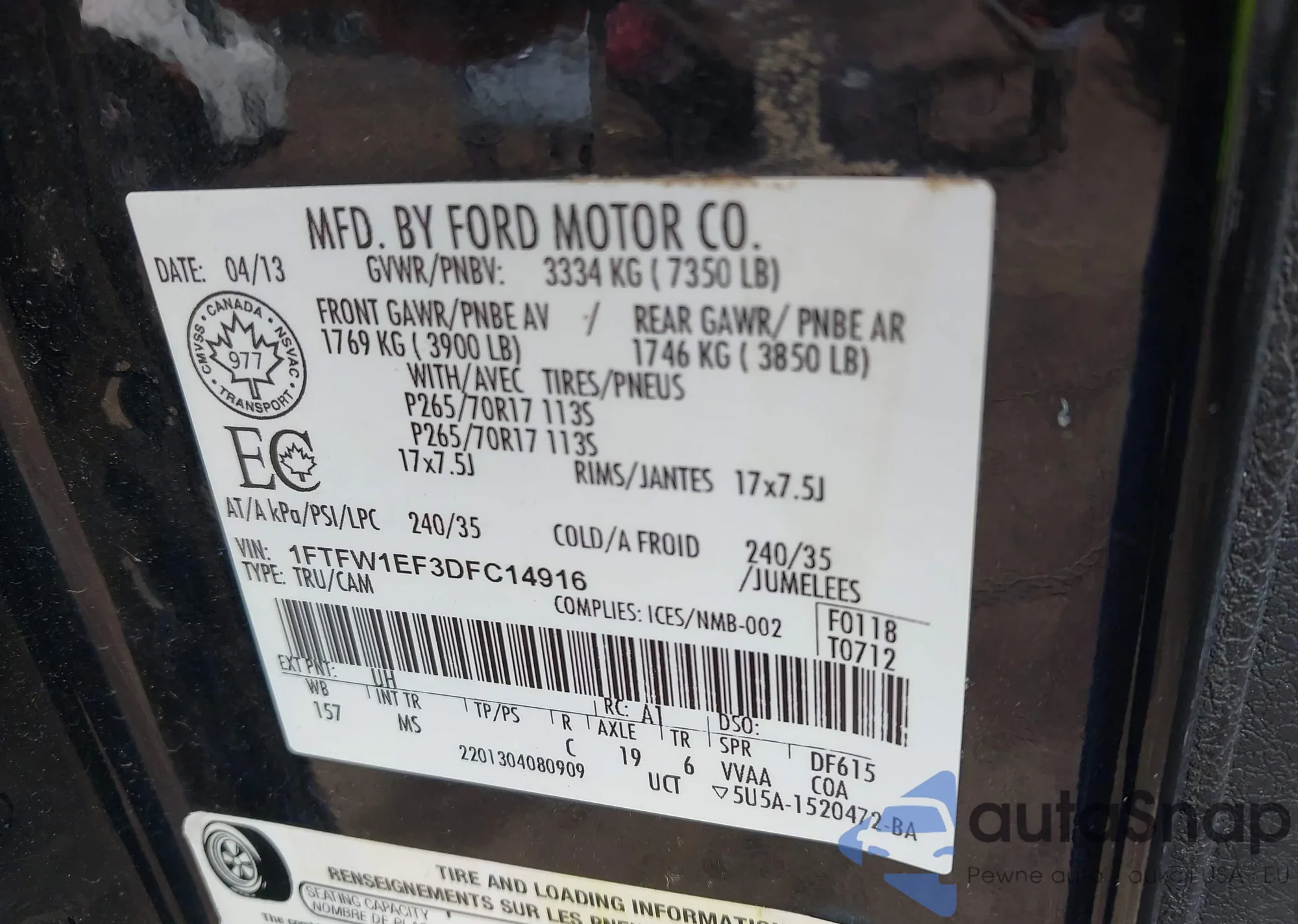 VIN: 1FTFW1EF3DFC14916