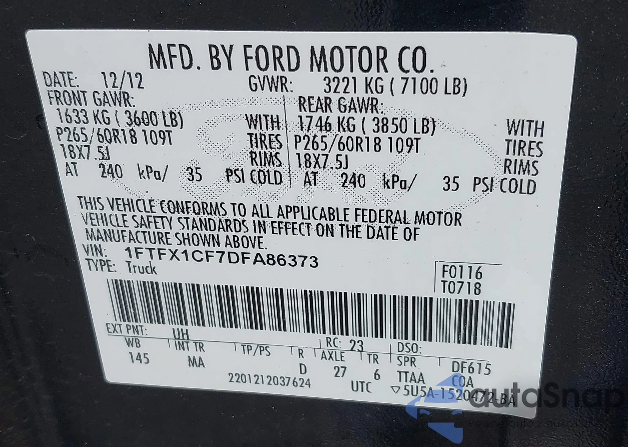 VIN: 1FTFX1CF7DFA86373
