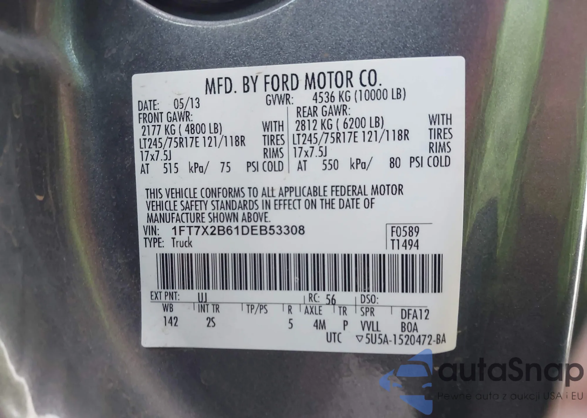 VIN: 1FT7X2B61DEB53308