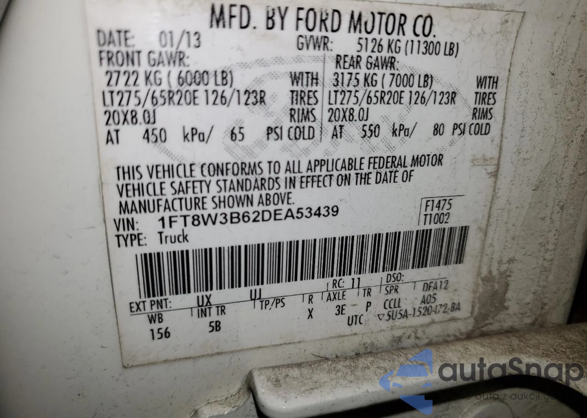 VIN: 1FT8W3B62DEA53439