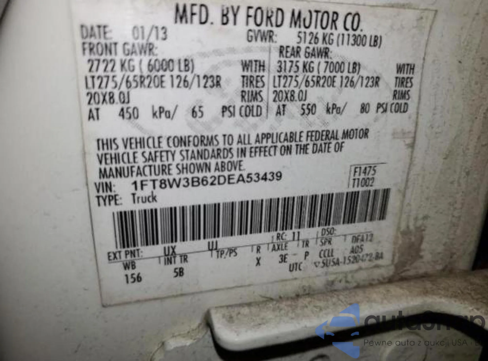 VIN: 1FT8W3B62DEA53439