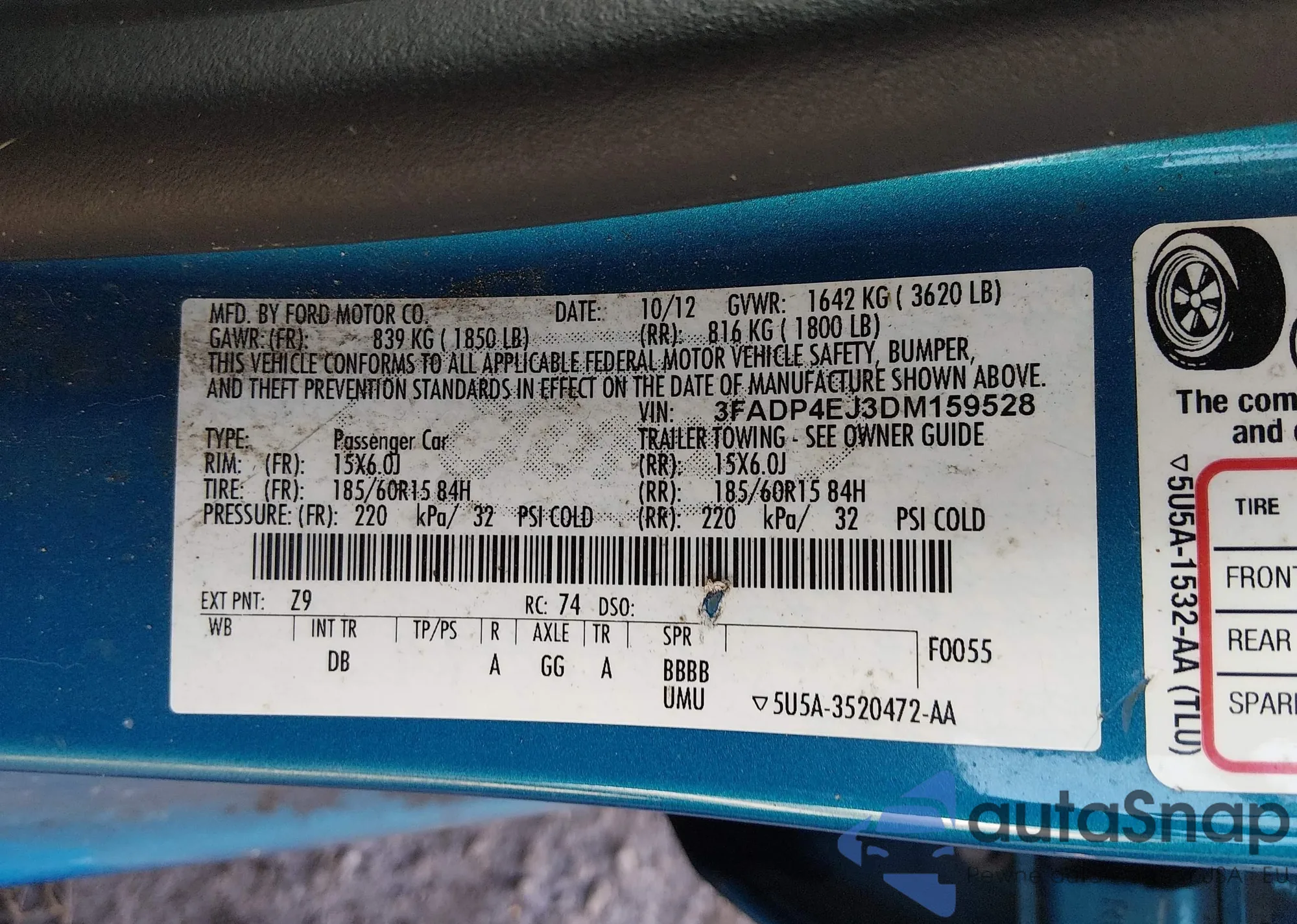 VIN: 3FADP4EJ3DM159528