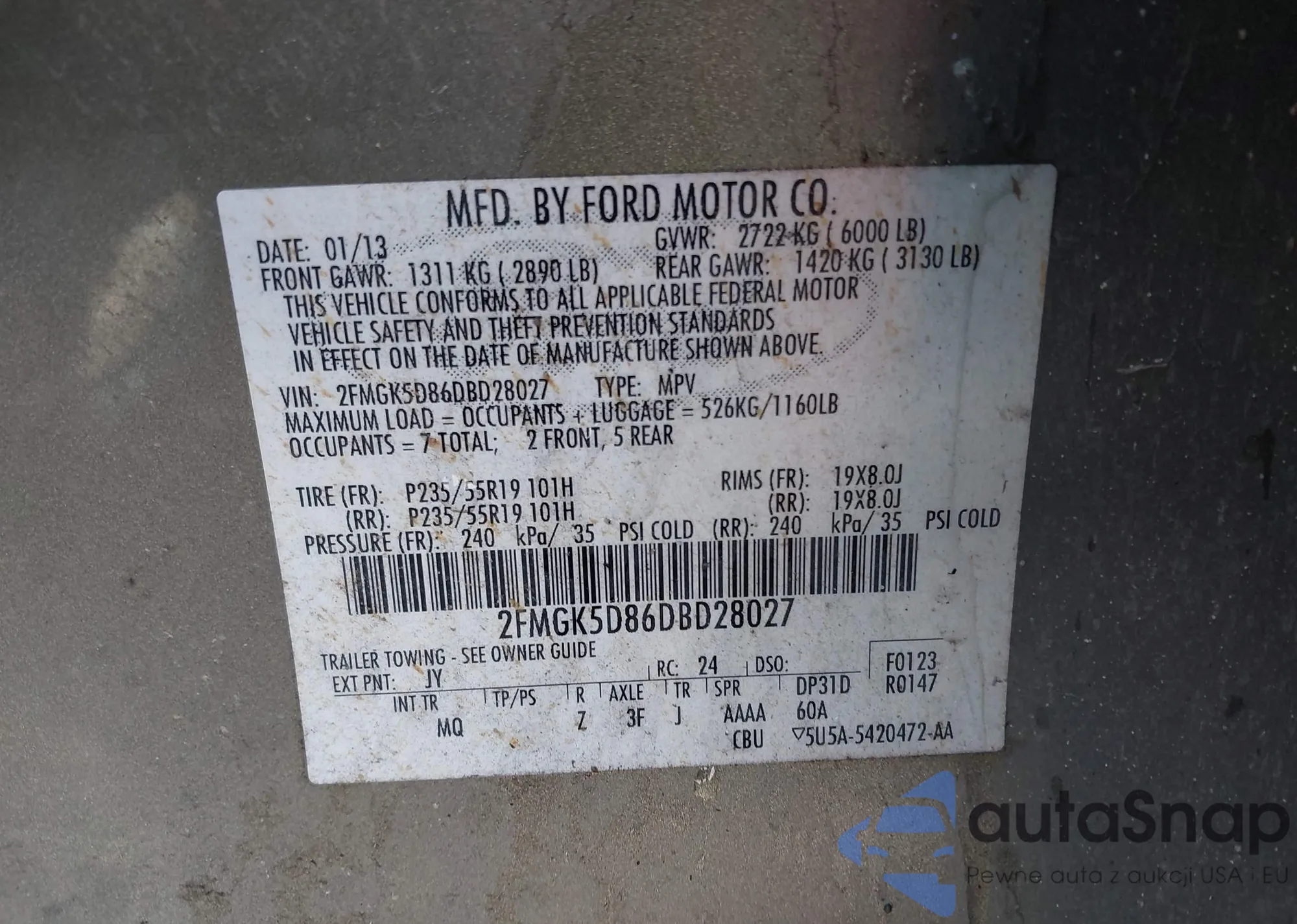 • VIN: 2FMGK5D86DBD28027