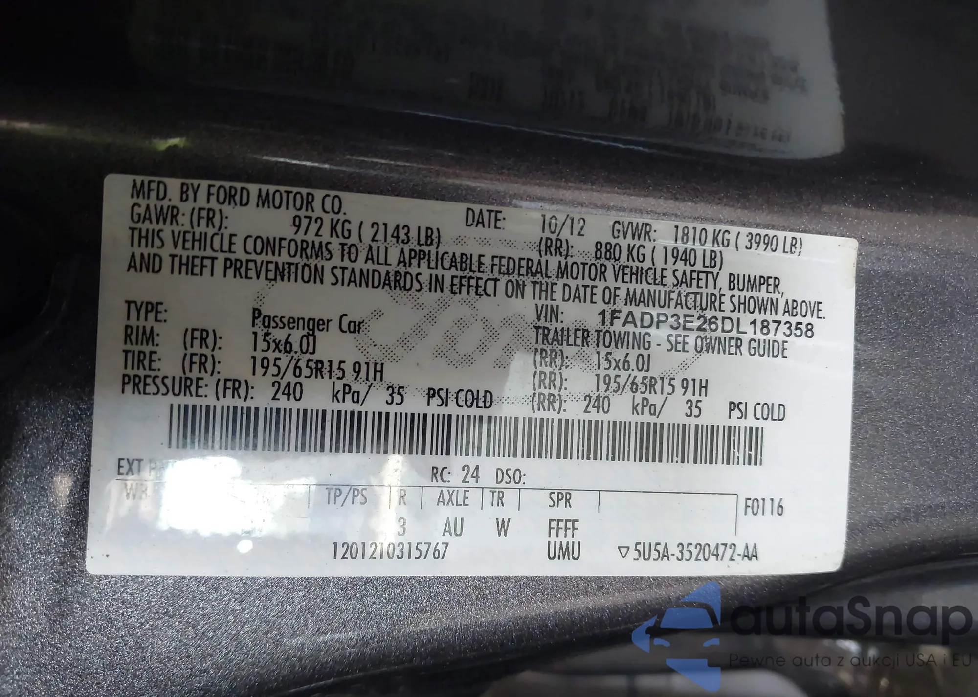 VIN: 1FADP3E26DL187358