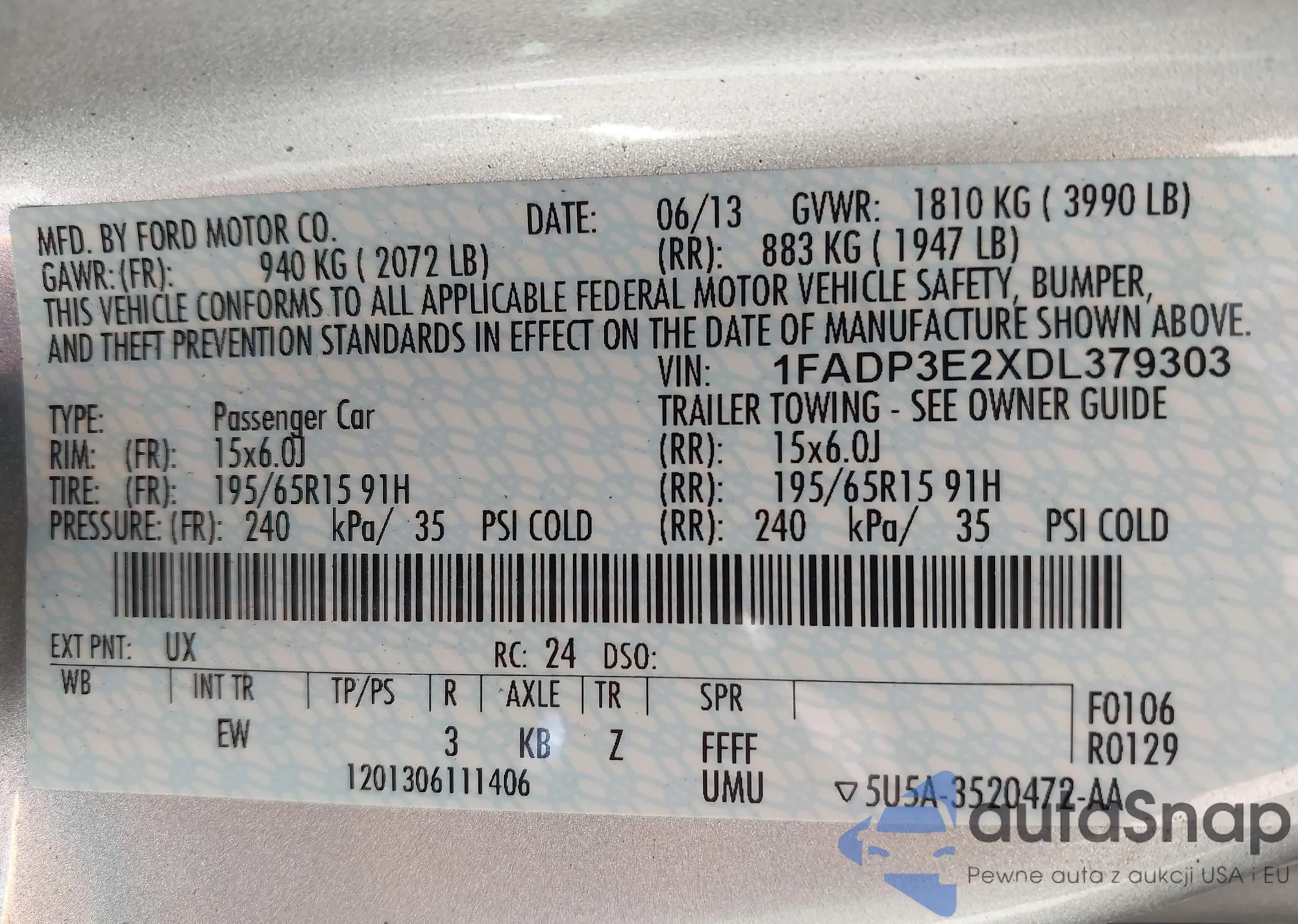 VIN: 1FADP3E2XDL379303