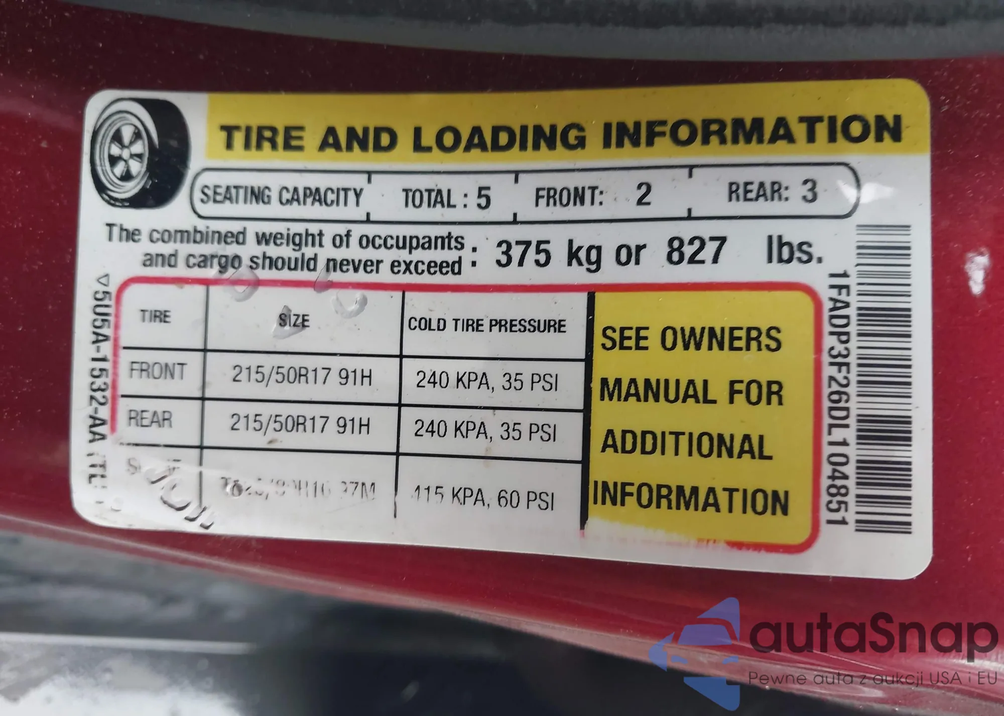 VIN: 1FADP3F26DL104851