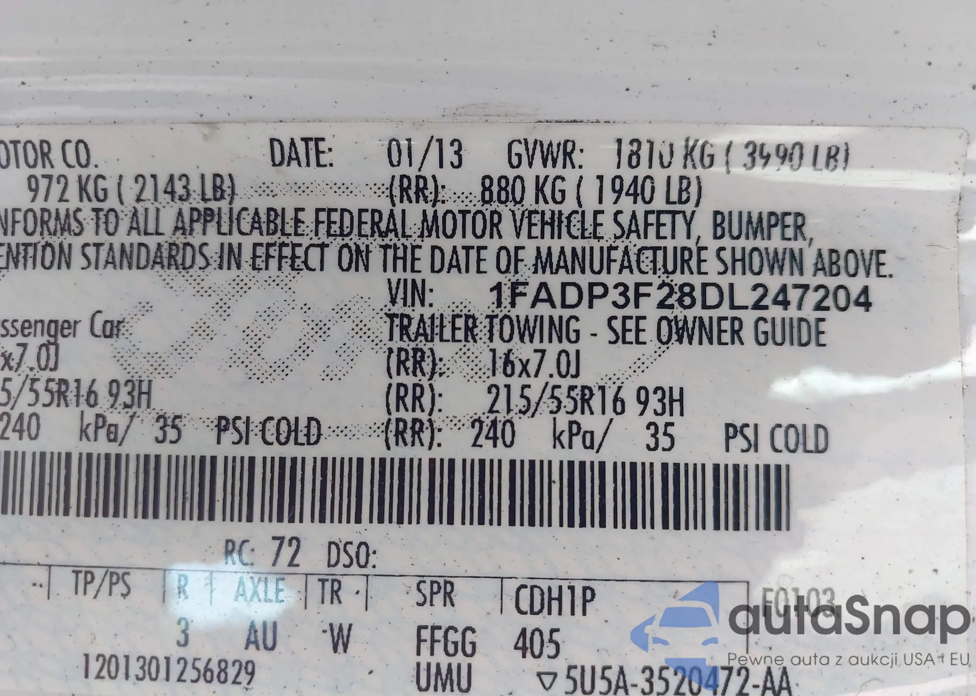 VIN: 1FADP3F28DL247204