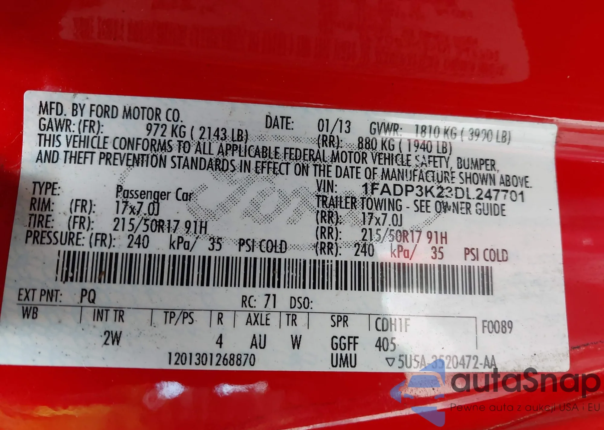 VIN: 1FADP3K23DL247701
